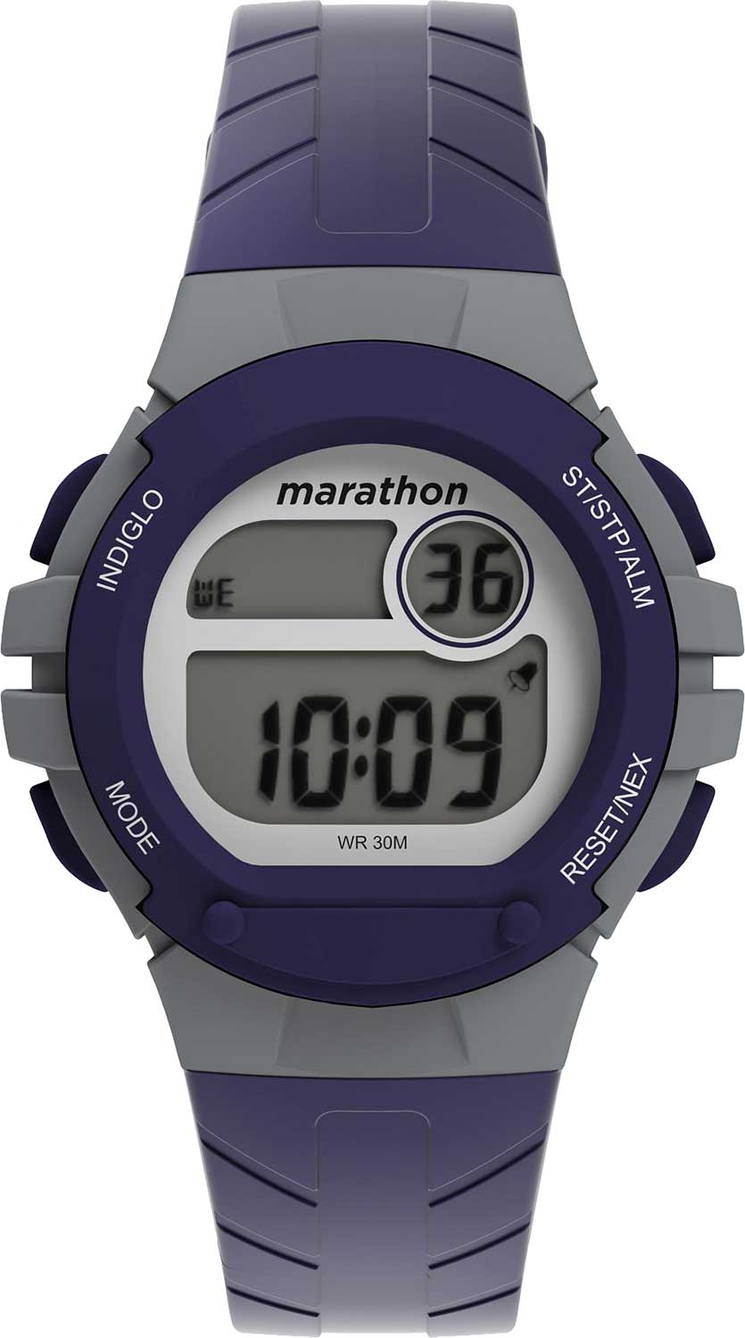 Marathon. Электронный SPLIT-хронограф с секундомером. Циферблат с фирменной подсветкой Indiglo. Функция будильника. Стальная задняя крышка крепится на 4-х винтах. Ремешок с классической застежкой.
