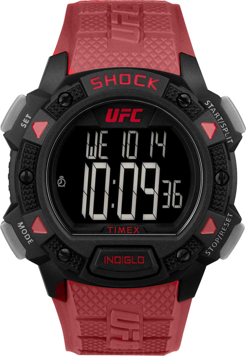 Выполненные в спортивном стиле часы с цифровым дисплеем станут верным помощником в вашей активной жизни.Timex x UFC Core Shock. Противоударный корпус. Электронный SPLIT-хронограф с секундомером. Таймер обратного отсчета. 12-ти и 24-х часовой формат времени. Второй часовой пояс. Циферблат с подсветкой Indiglo