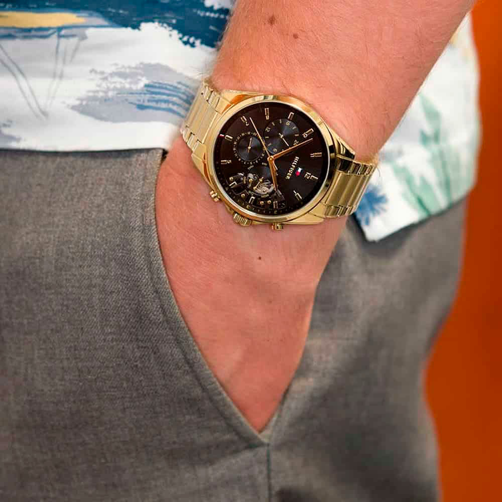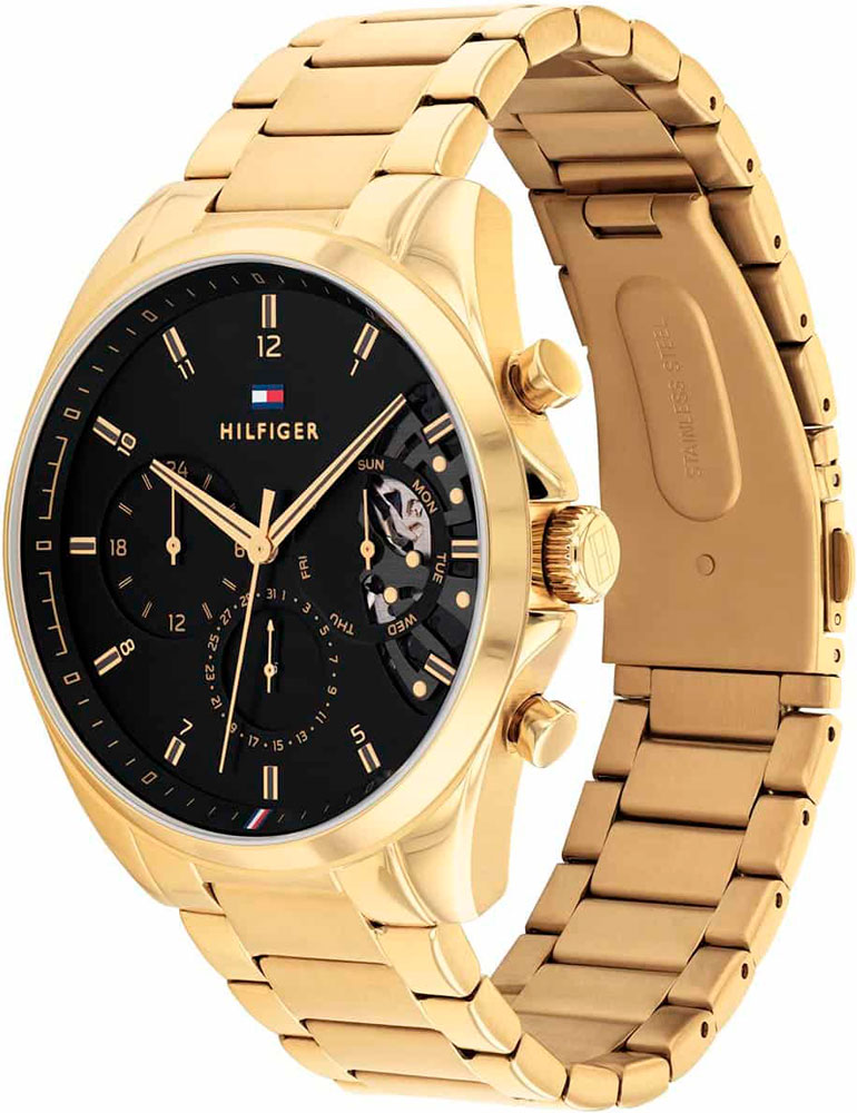 Практичные часы со стильным дизайном подчеркнут ваш безупречный вкус. Мужские часы с круглым корпусом Baker. 12-ти и 24-х часовой формат времени. Дата и день недели вынесены на отдельные циферблаты. Рифленая заводная головка с защитой. Браслет с раскладывающейся застежкой.
