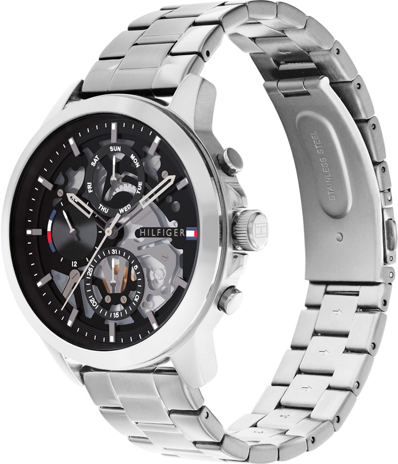 Эти стильные часы с оригинальными деталями созданы для ценителей модных и практичных аксессуаров. Скелетонизированные часы Henry. Сквозь прозрачное окошко на циферблате можно наблюдать за работой механизма часов. 12-ти и 24-х часовой формат времени. Дата и день недели вынесены на отдельные циферблаты. Метки в виде штрихов. Рифленая заводная головка с защитой. Браслет с раскладывающейся застежкой.