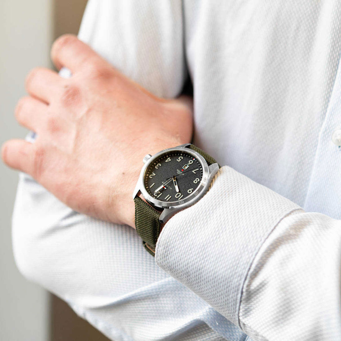 Классический дизайн и оригинальные элементы этих качественных часов позволяют чувствовать себя комфортно в любом месте и в любое время. Мужские часы Forrest с круглым стальным корпусом. Циферблат с метками в виде арабских цифр. Окошко даты находится в положении 6 часов. Рифленая заводная головка. Тканевый ремешок с классической застежкой.