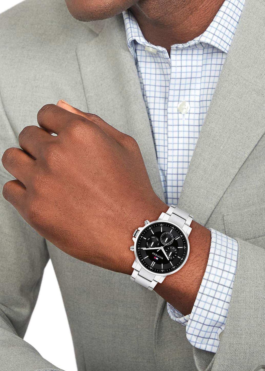 Дизайнерский аксессуар сочетает в себе современный дизайн и высокую точность. Мужские кварцевые часы Tyson. 12-ти и 24-х часовой формат времени. Круглый стальной корпус. Циферблат с радиальным узором в зоне меток и логотипом бренда защищен минеральным стеклом. Метки в виде штрихов. По краю циферблата нанесена минутная шкала. Время в 24-х часовом формате, дата и день недели вынесены на отдельные циферблаты. Рифленая заводная головка с защитой. Стальной браслет с раскладывающейся застежкой.