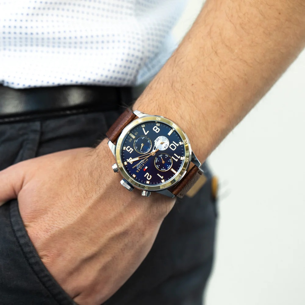 Современные часы со стильным дизайном подчеркнут ваш безупречный вкус. Trent. Мужские часы с круглым корпусом и функцией 12-ти и 24-х часового формата времени, дня недели и числа на малых циферблатах. Кожаный ремешок с классической застежкой.