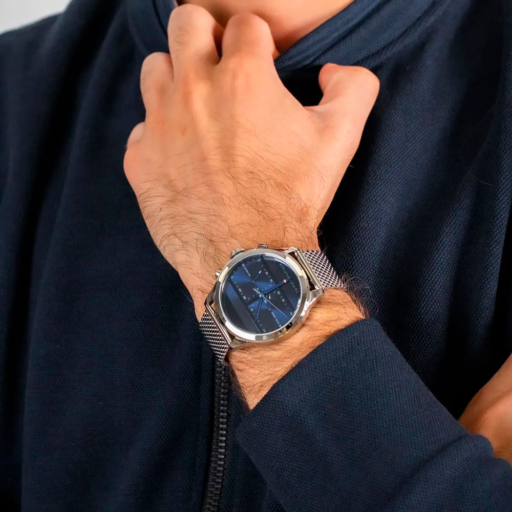 Стильные и функциональные наручные часы великолепно дополнят образ современного мужчины. Мужские кварцевые часы Icon. 12-ти и 24-х часовой формат времени. Второй часовой пояс. Циферблат защищен минеральным стеклом. Рифленая заводная головка. Стальной браслет миланского плетения.