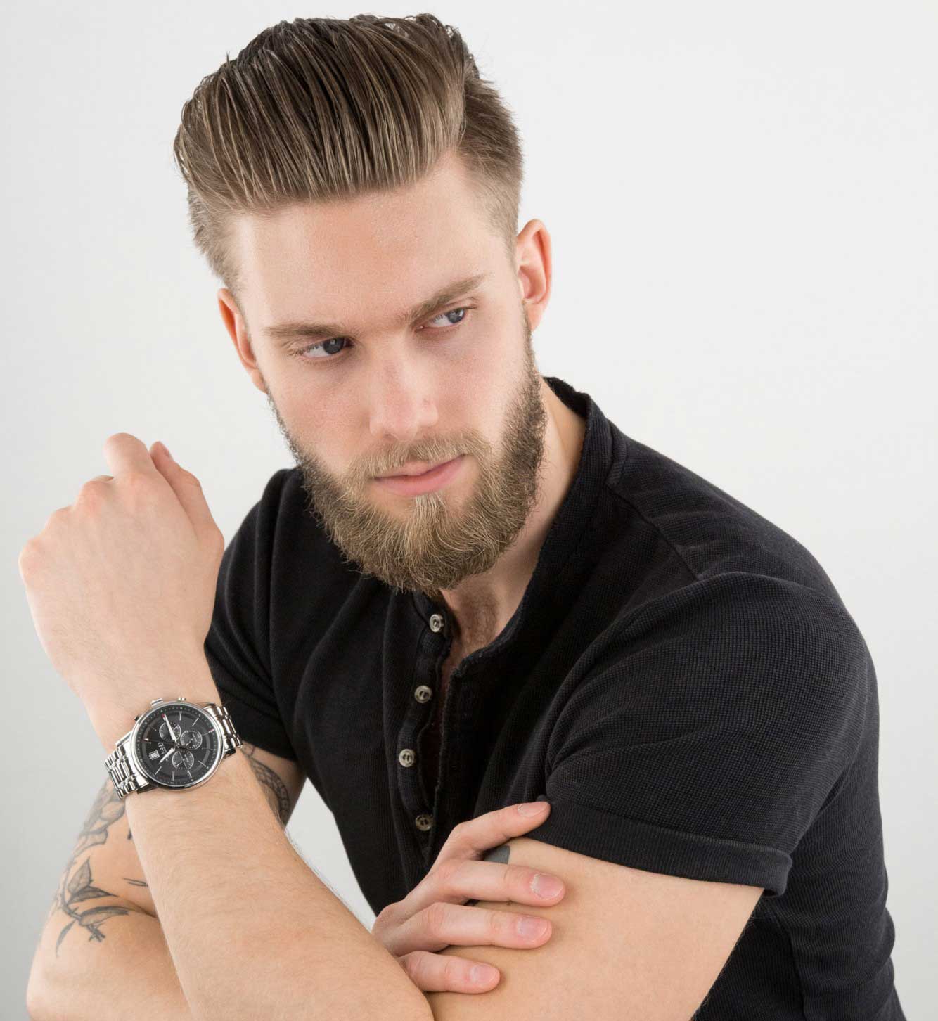 Стильные и функциональные, эти часы легко впишутся в ваш образ безупречного мачо. Внешний вид, который соответствует содержанию. Kyle. Второй часовой пояс. 12-ти и 24-х часовой формат времени. Время в 24-х часовом формате и второй часовой пояс вынесены на отдельные циферблаты. Окошко даты находится в положении 12 часов. Рифленая заводная головка. Браслет с раскладывающейся застежкой.