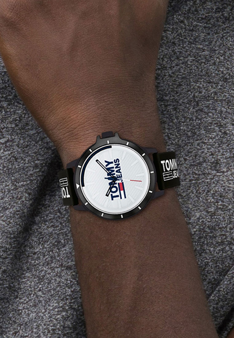 Аксессуар, сочетающий в себе актуальность и непринужденность. Стильный дизайн этих современных часов подчеркнет ваш безупречный вкус. Рельефный циферблат белого цвета с фирменным логотипом. Рифленая заводная головка с защитой. Ремешок из силикона черного цвета. Фирменная отделка Tommy Jeans.