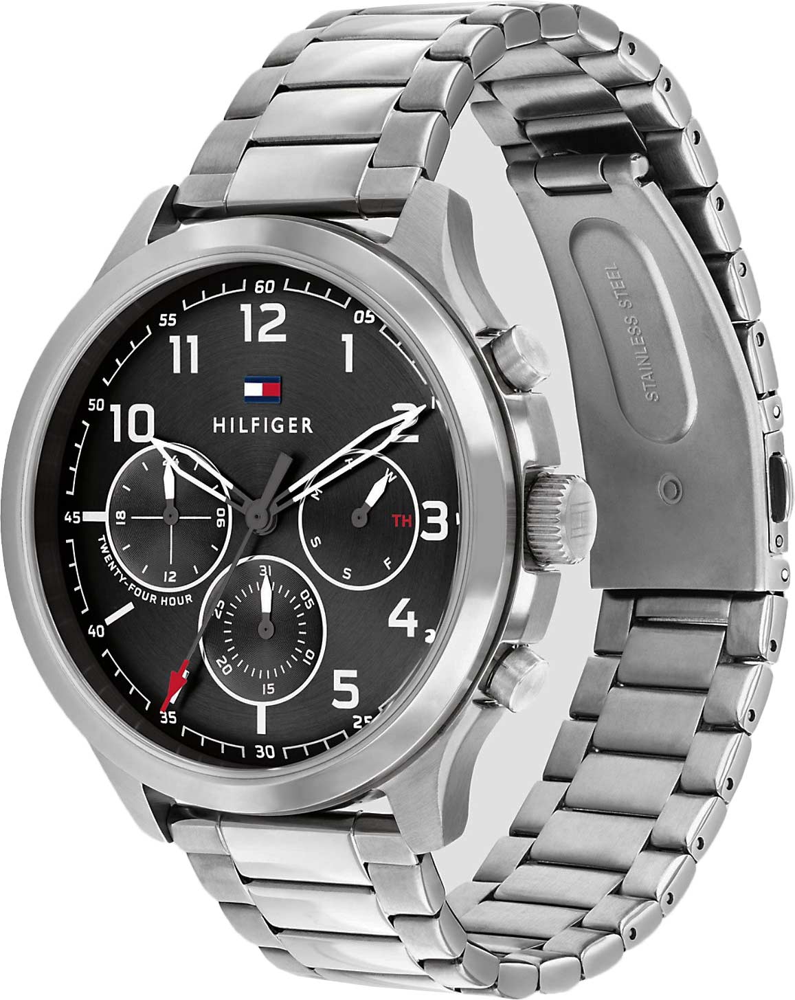 Многофункциональный аксессуар это то, что будет помогать вам в безумном ритме времени. Asher. Мужские часы с круглым корпусом. Циферблат выполнен по технологии Sunray (солнечные лучи). Метки в виде штрихов и арабских цифр. 12-ти и 24-х часовой формат времени. Время в 24-х часовом формате, дата и день недели вынесены на отдельные циферблаты. Заводная головка с защитой. Браслет с раскладывающейся застежкой.