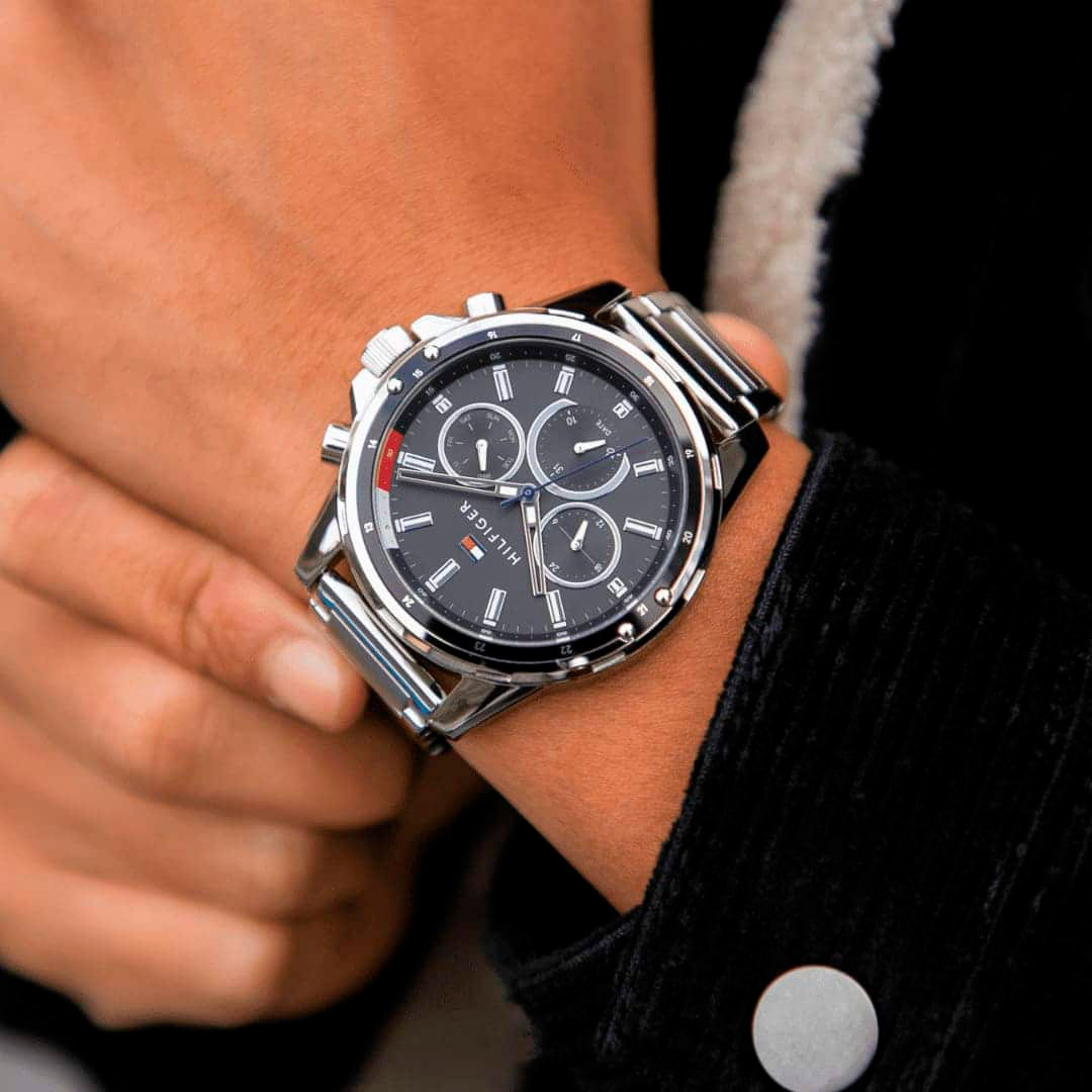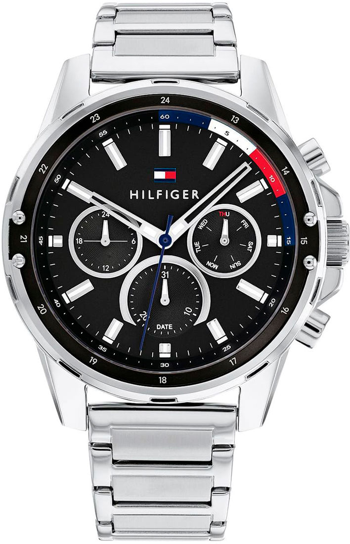 Стильные и надежные часы со спортивным характером по достоинству оценят активные современные мужчины. Мужские часы Mason. 12-ти и 24-х часовой формат времени. Время в 24-х часовом формате, дата и день недели вынесены на отдельные циферблаты. Циферблат с метками в виде штрихов. Рифленая заводная головка с защитой. Стальной браслет с раскладывающейся застежкой.