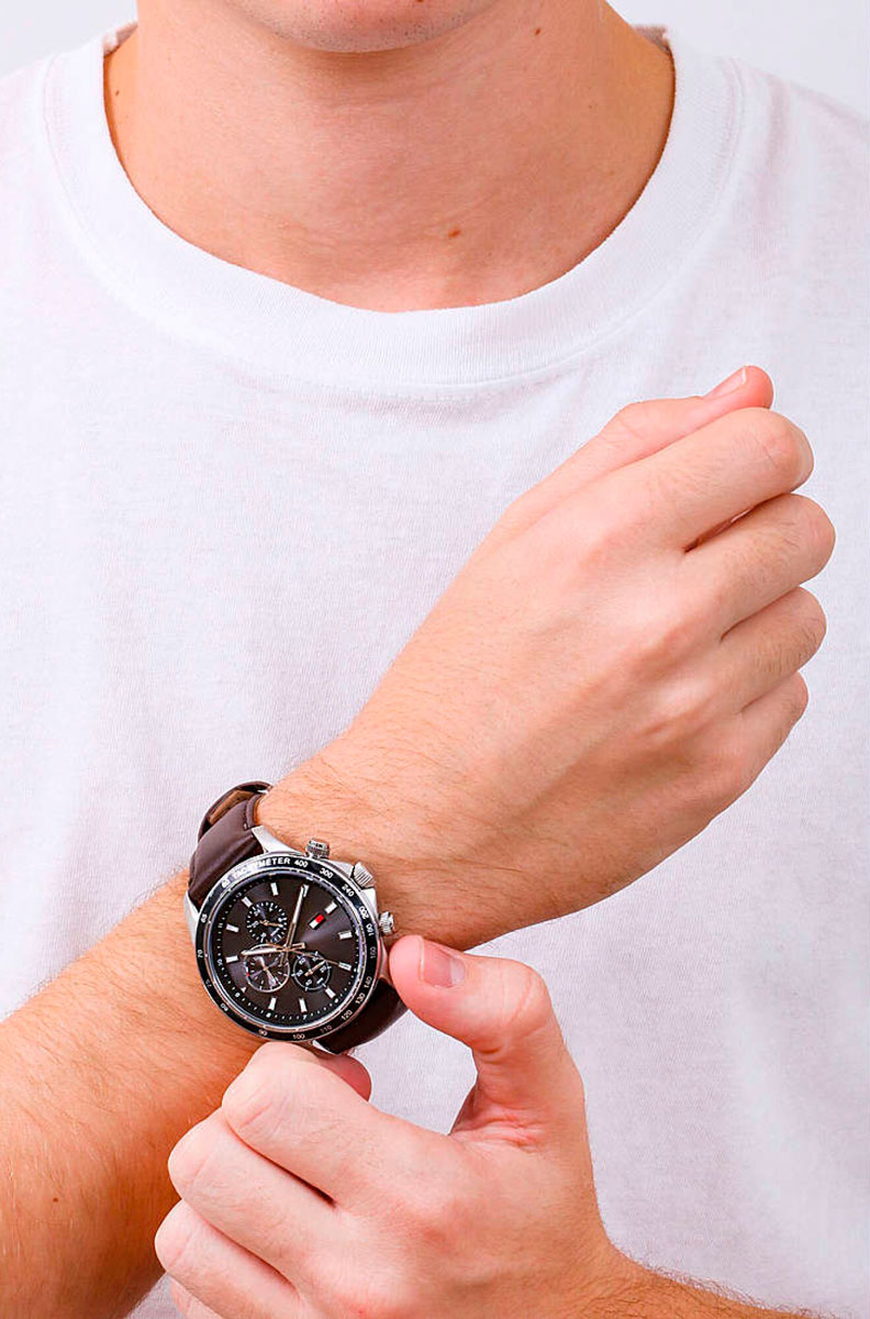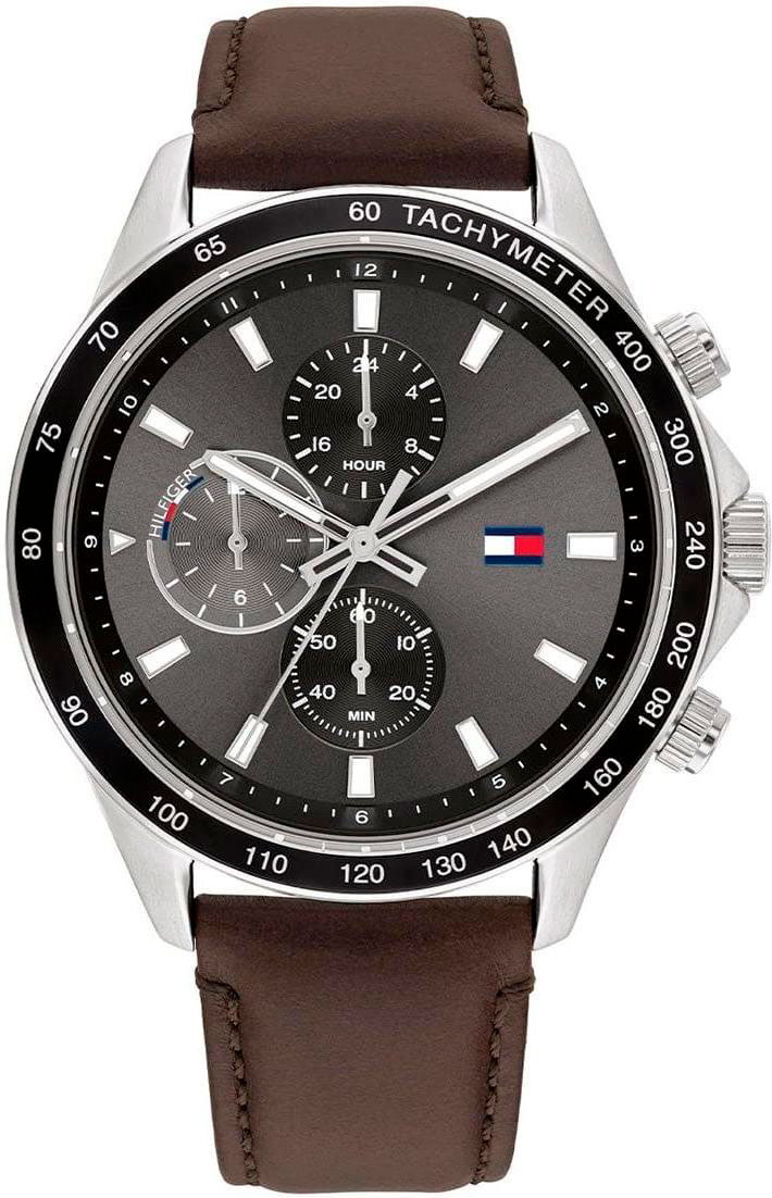 Практичные часы с функцией второго часового пояса станут полезным аксессуаром для любителей путешествий. Мужские часы с тахиметром Miles. Второй часовой пояс. 12-ти и 24-х часовой формат времени. Время в 24-х часовом формате и второй часовой пояс вынесены на отдельные циферблаты. Рифленая заводная головка с защитой. Кожанный ремешок с классической застежкой.