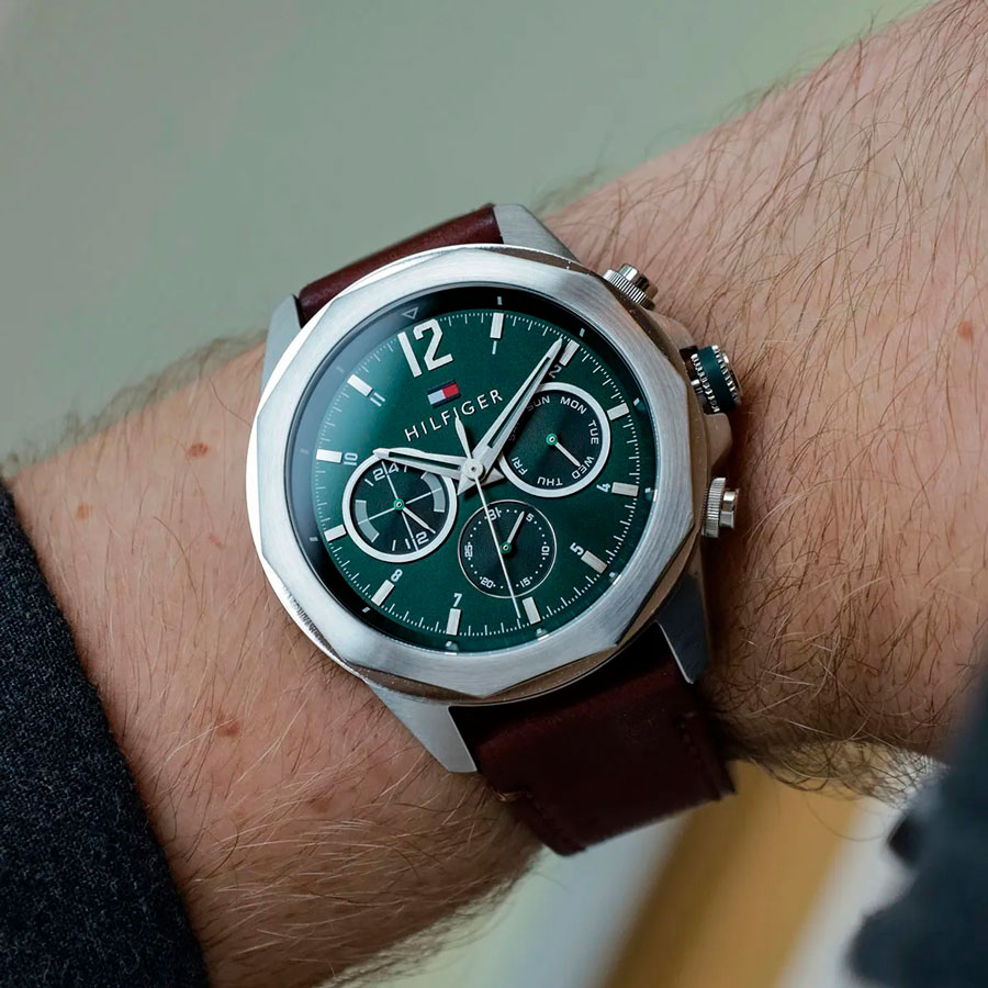 Продуманный и функциональный дизайн часов смотрится стильно и современно в любой ситуации. Идеальный выбор для мужчин с безукоризненным чувством вкуса. Мужские часы с круглым корпусом Lars. 12-ти и 24-х часовой формат времени. Дата и день недели вынесены на отдельные циферблаты. Рифленая заводная головка с защитой. Кожанный ремешок с классической застежкой.
