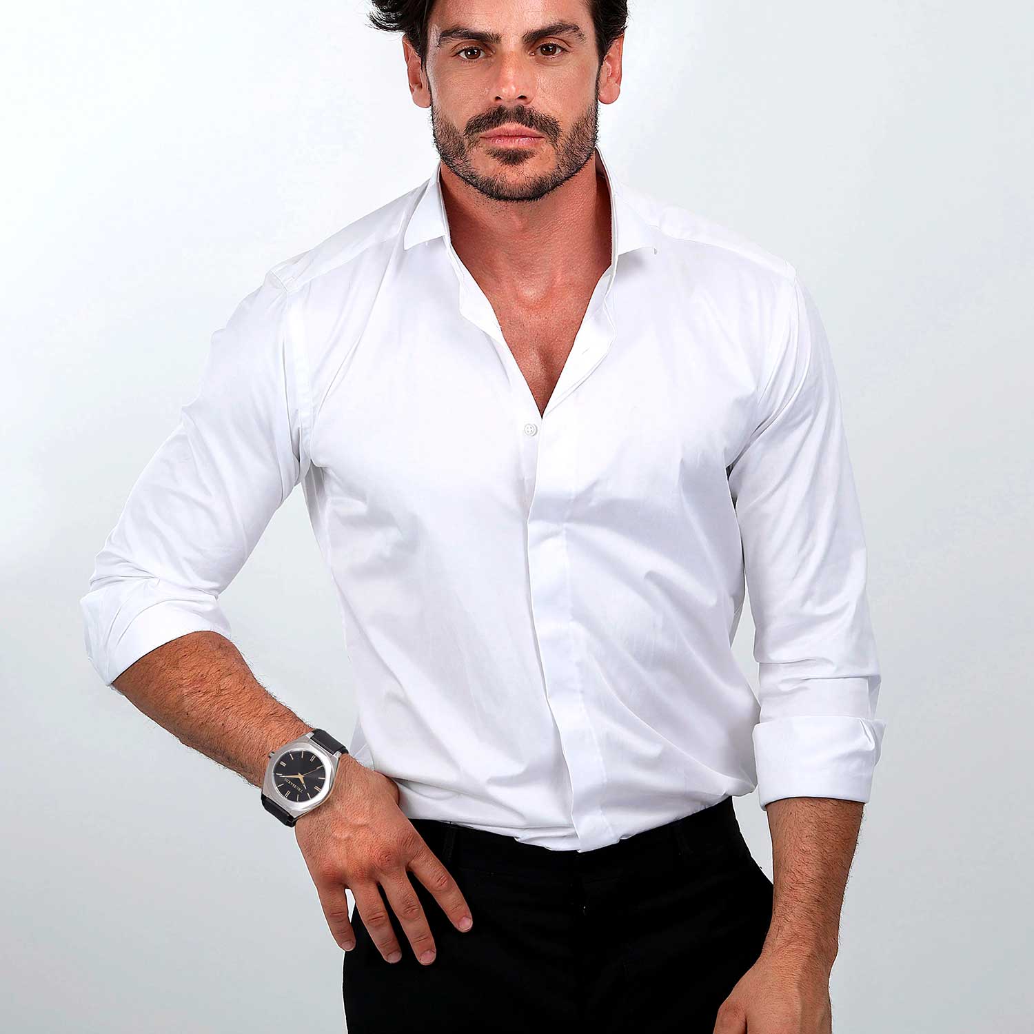 Кварцевые наручные мужские часы. Стальной корпус с матовой и полированной отделкой. Декоративный безель. Циферблат выполнен по технологии Sunray (солнечные лучи). Накладные метки в виде штрихов. Клиновидные стрелки в стиле Dauphine с люминесцентным покрытием, которое светится в темноте после непродолжительной зарядки на свету. Заводная головка в форме болта. Удобный кожаный ремешок с классической застежкой.