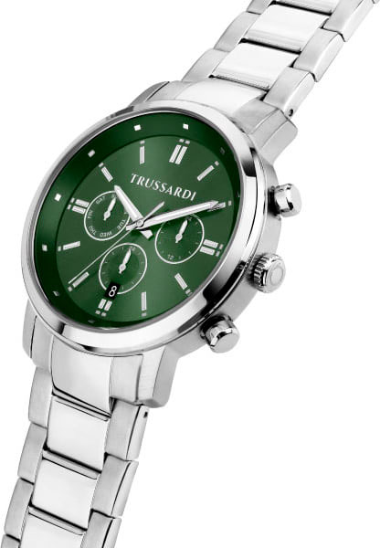 Стильный дизайн и широкий набор функций — выбор современного мужчины, который стремится к достижению новых целей. Мужские часы T-Couple. 12-ти и 24-х часовой формат времени. Второй часовой пояс в 24-х часовом формате. Круглый стальной корпус. Метки в виде штрихов. Прямоугольные стрелки в стиле Baton. Окошко даты находится в положении 6 часов. День недели отображается на отдельном циферблате. Надежный стальной браслет с раскладывающейся застежкой.