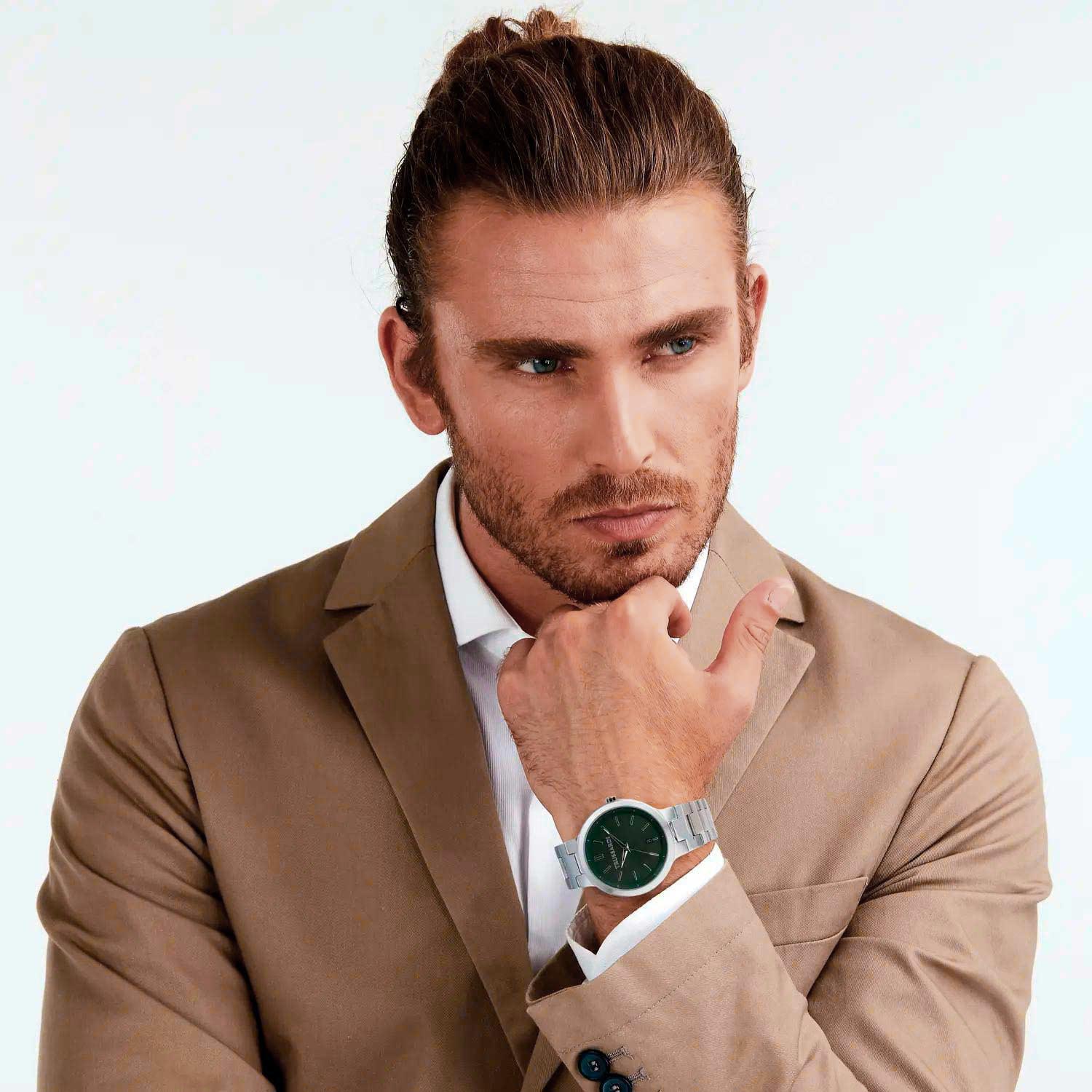 Дизайн этих часов непременно придется по вкусу любителям минимализма в максимально современном стиле. Мужские наручные кварцевые часы. Круглый стальной корпус с матовой и полированной отделкой. Циферблат выполнен по технологии Sunray (солнечные лучи). Накладные метки в виде штрихов. Окошко даты находится в положении 6 часов. Клиновидные стрелки в стиле Dauphine с люминесцентным покрытием, которое светится в темноте после непродолжительной зарядки на свету. Рифленая заводная головка в форме болта. Стальной браслет с матовой и полированной отделкой с раскладывающейся застежкой.