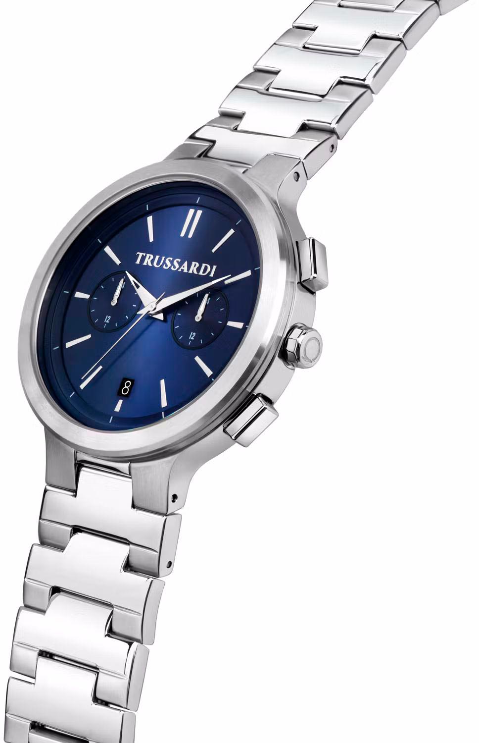 Продуманный дизайн в лаконичном исполнении смотрится актуально в повседневном образе делового мужчины. Безупречность во все времена. Функциональные мужские наручные кварцевые часы. Круглый стальной корпус с матовой и полированной отделкой. Циферблат выполнен по технологии Sunray (солнечные лучи). Накладные метки в виде штрихов. 12-ти и 24-х часовой формат времени. Второй часовой пояс в 24-х часовом формате. Окошко даты находится в положении 6 часов. Клиновидные стрелки в стиле Dauphine с люминесцентным покрытием, которое светится в темноте после непродолжительной зарядки на свету. Рифленая заводная головка в форме болта. Стальной браслет с матовой и полированной отделкой с раскладывающейся застежкой.
