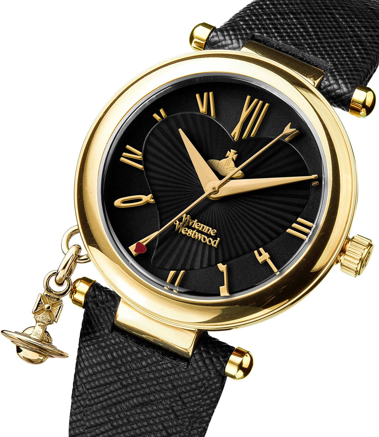 Часы от Vivienne Westwood — это не просто аксессуар, это вызов настоящему, чтобы стать лучше в будущем. Данная модель отражает смелый, бескомпромиссный подход к дизайну, олицетворяющему глубокую привязанность Вивьен как к человечеству, так и к планете. Женские наручные часы Orb Heart. Круглый стальной корпус с подвеской. Двухуровневый циферблат дополнен фактурным сердцем и логотипом бренда. Метки в виде римских и арабских цифр. Секундная стрелка украшена красным сердцем. Рифленая заводная головка. Фактурный кожаный ремешок с классической застежкой.