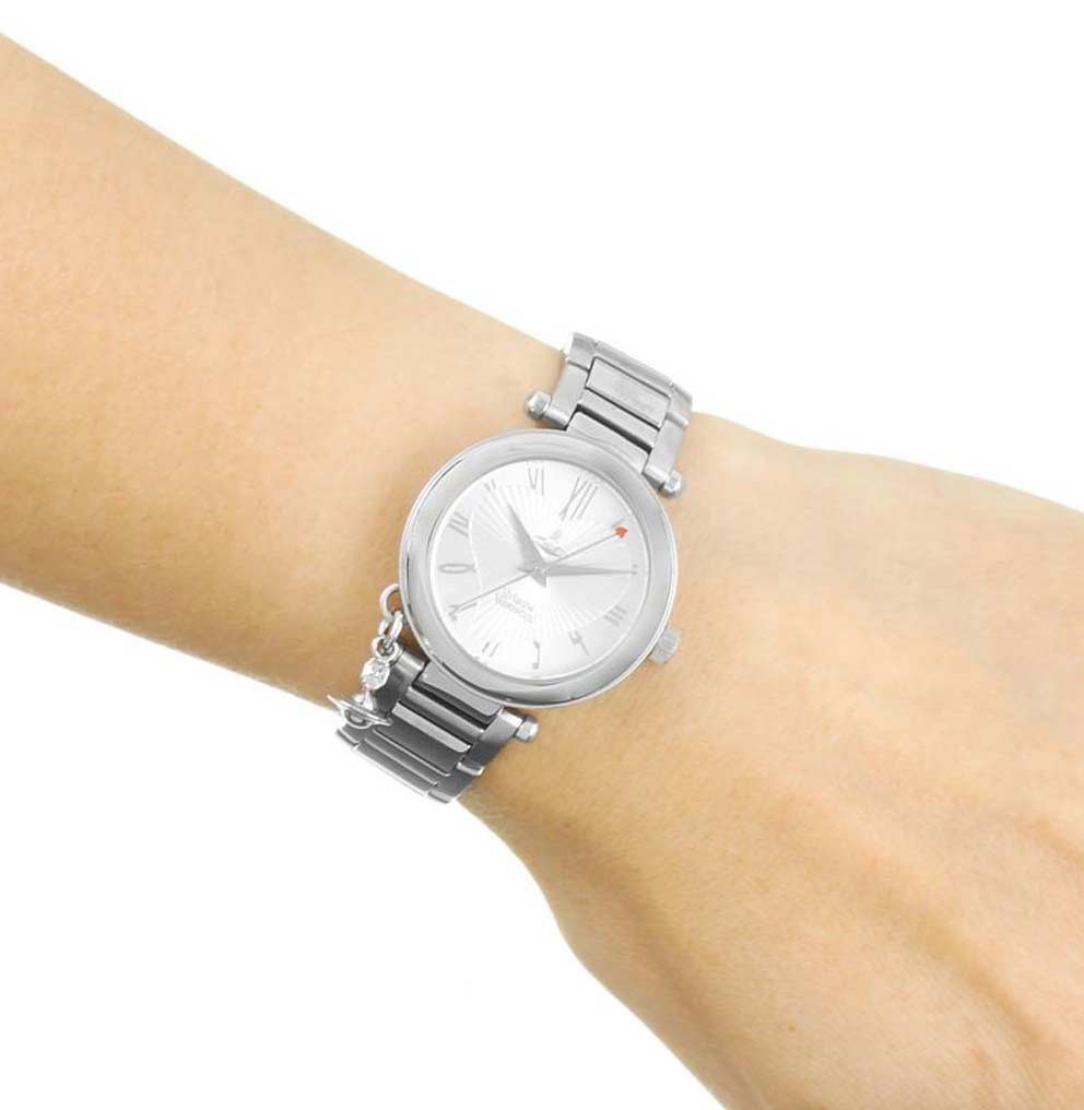 Часы от Vivienne Westwood — это не просто аксессуар, это вызов настоящему, чтобы стать лучше в будущем. Данная модель отражает смелый, бескомпромиссный подход к дизайну, олицетворяющему глубокую привязанность Вивьен как к человечеству, так и к планете. Женские наручные часы Orb Heart. Круглый стальной корпус с подвеской. Двухуровневый циферблат дополнен фактурным сердцем и логотипом бренда. Метки в виде римских и арабских цифр. Секундная стрелка украшена красным сердцем. Рифленая заводная головка. Удобный стальной браслет.