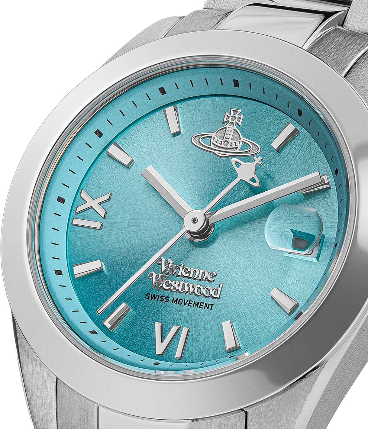 Часы от Vivienne Westwood — это не просто аксессуар, это вызов настоящему, чтобы стать лучше в будущем. Модель названа в честь исторического финансового района Лондона. Женские наручные часы. Круглый стальной корпус. Циферблат выполнен по технологии Sunray (солнечные лучи) и украшен логотипом бренда. Метки в виде штрихов и римских цифр. Окошко даты с увеличительным стеклом находится в положении 3 часа. Рифленая заводная головка. Удобный стальной браслет с раскладывающейся застежкой.