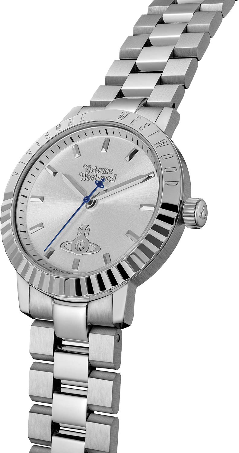 Dulwich. Женские наручные часы. Стальной круглый корпус. Рифленый безель с выгравированным логотипом. Циферблат с накладными метками в виде штрихов выполнен по технологии Sunray (солнечные лучи) и украшен фирменным логотипом.