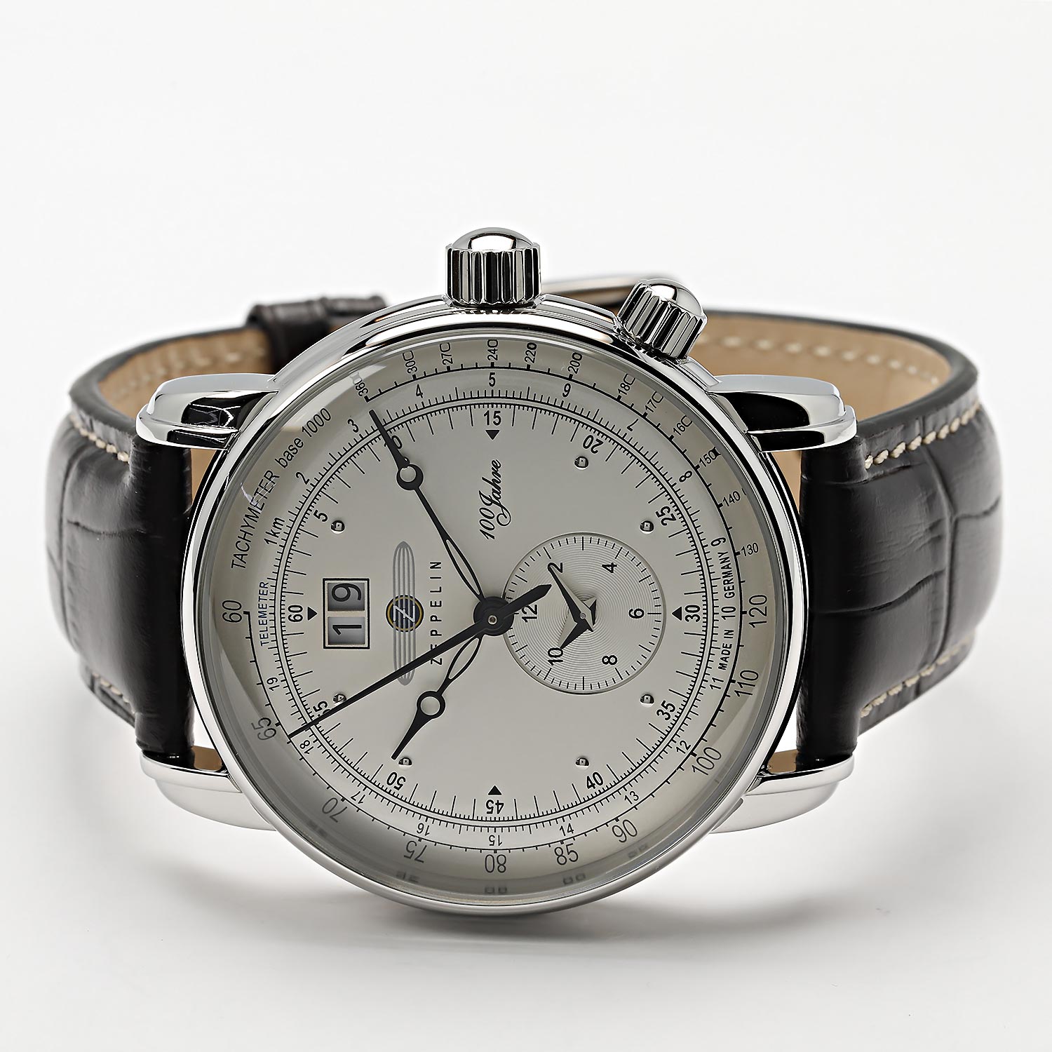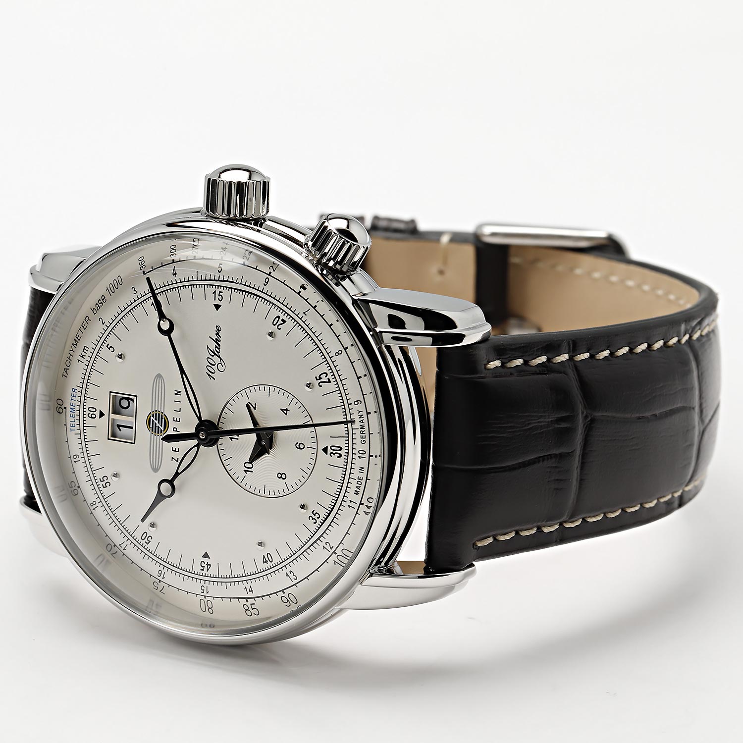 Многофункциональные, эргономичные часы с круглым корпусом на кожаном ремешке - для смелых и решительных. 100 Years Zeppelin. Тахиметр. Телеметрическая шкала. Второй часовой пояс.