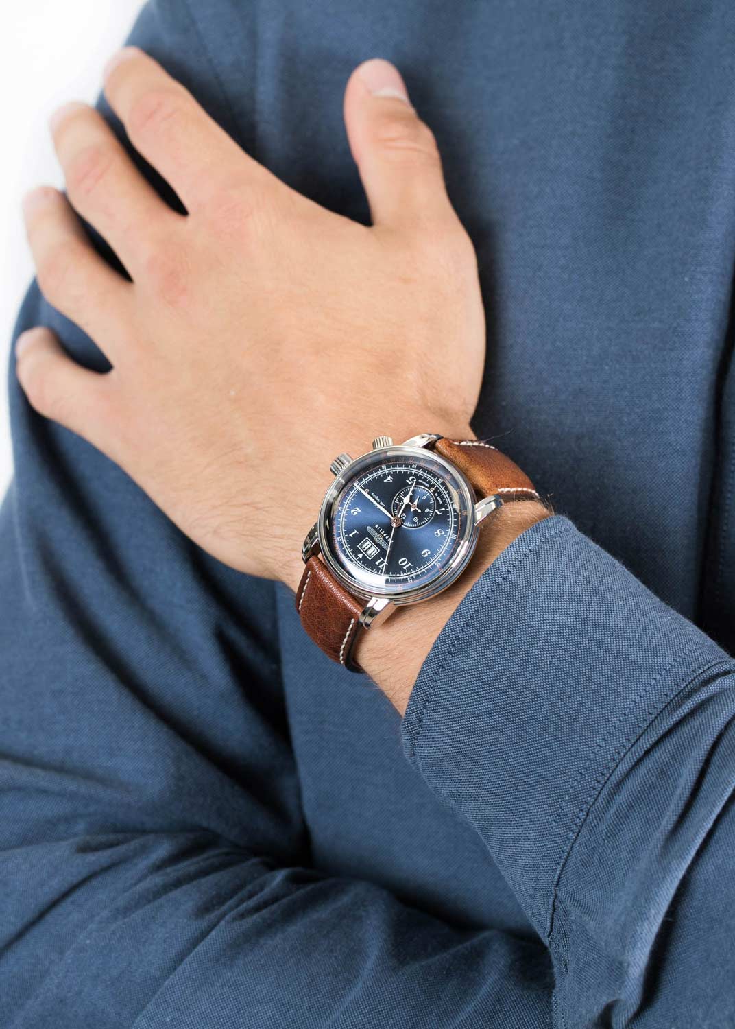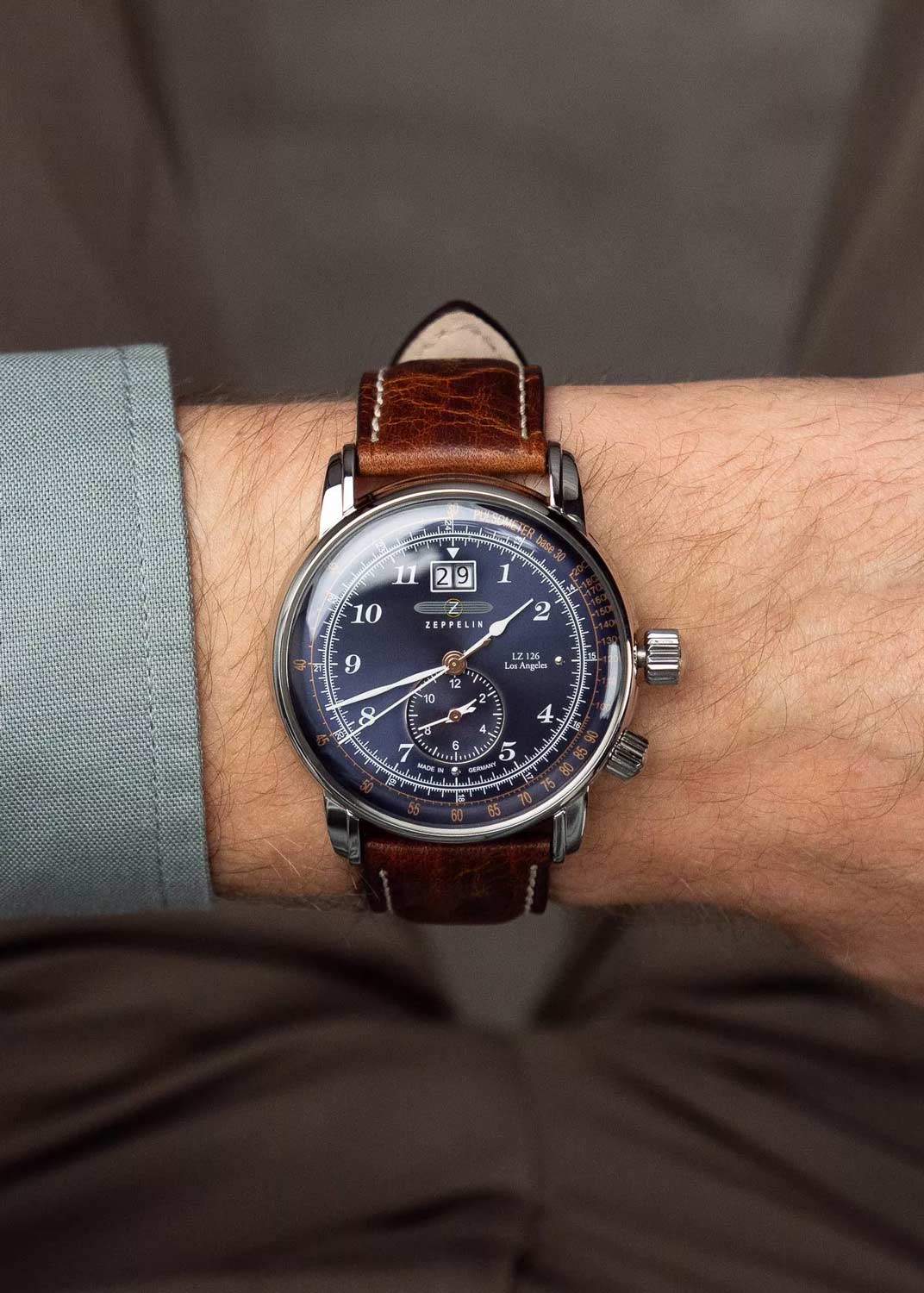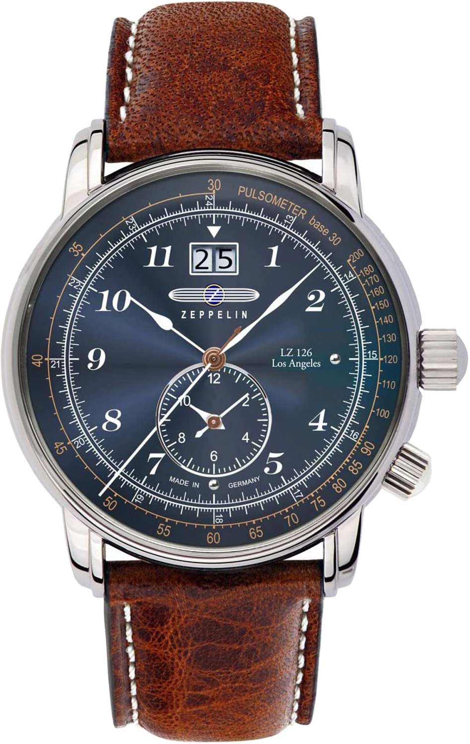 Мужские наручные часы со шкалой пульсометра LZ126 Los Angeles Dual Time. Второй часовой пояс. Круглый стальной корпус. Циферблат с метками в виде арабских цифр и точек. Окошко даты находится в положении 12 часов. Стрелки в стиле Breguet.