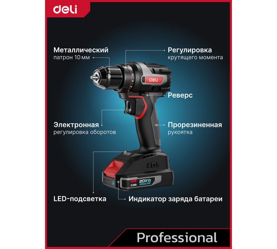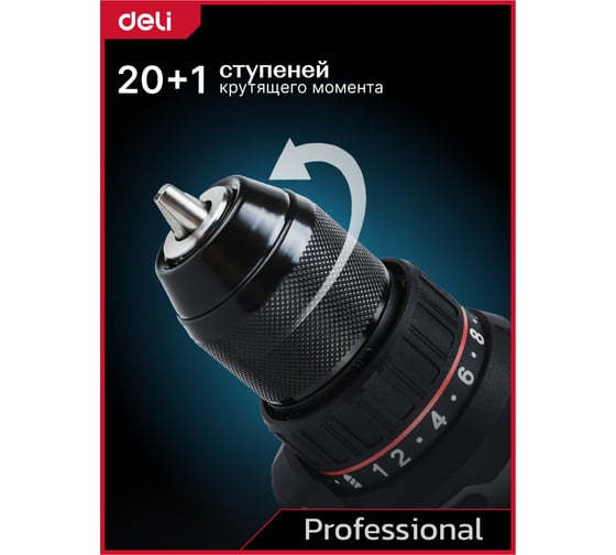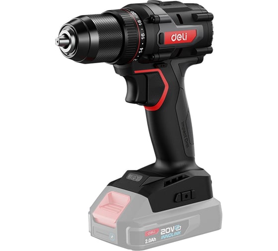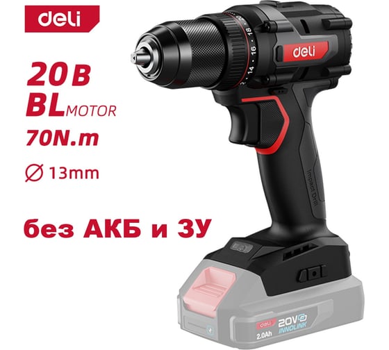 Профессиональный бесщеточный аккумуляторный шуруповерт DE-DZ20-2 (Без АКБ и ЗУ, 13мм, 70Нм, картон) DELI 164329