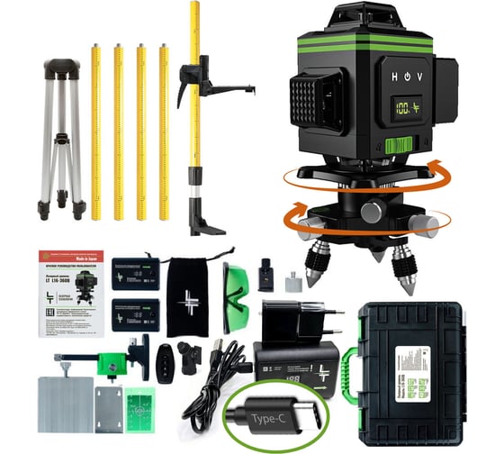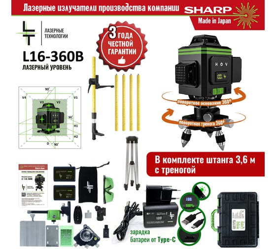 Профессиональный лазерный уровень LT L16-360В + штатив с треногой 3.6 м L16-360В/3.6+