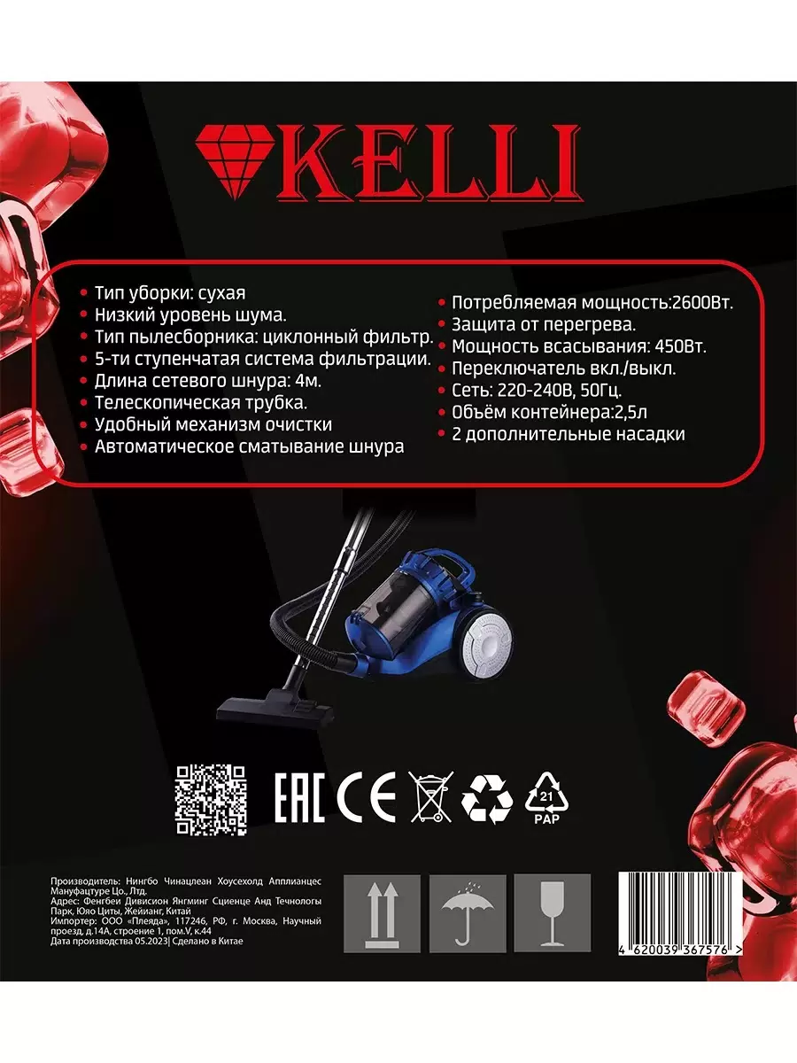 Пылесос KELLI KL-8019 синий