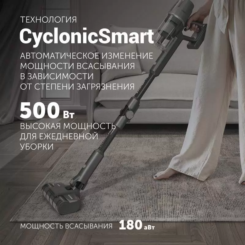- Комплект поставкипылесос; батарея; напольная подставка; мини турбощетка