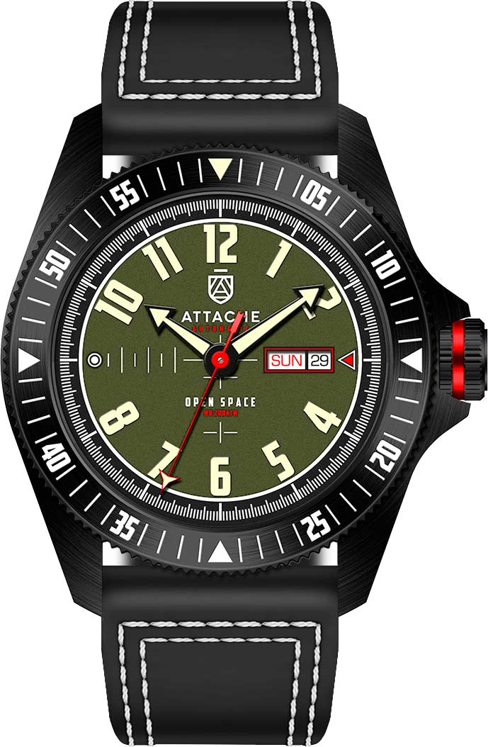 Великолепный аксессуар от ATTACHE станет надежным хранителем времени, куда бы вы ни отправились. Доверьте самое ценное профессионалу. Лимитированная серия — 50 экземпляров. Мужские автоматические наручные часы. Круглый стальной корпус. Рифленый безель. Матовый циферблат. Метки в виде арабских цифр. Окошко даты и дня недели находится в положении 3 часа. Люминесцентное покрытие Super-LumiNova, которое светится в темноте после непродолжительной зарядки на свету. Завинчивающаяся задняя крышка с изображением космонавта. Завинчивающаяся рифленая заводная головка с защитой. Удобный кожаный ремешок с классической застежкой. В комплекте сменный силиконовый ремешок.