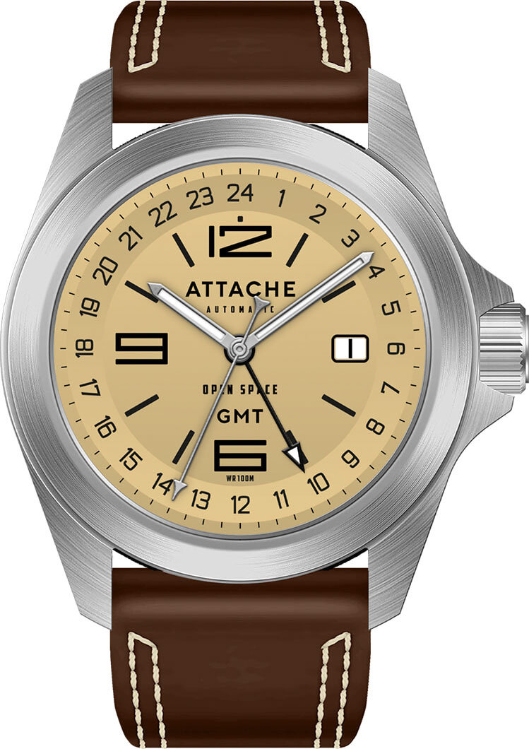 Российские механические наручные часы ATTACHE OPEN-SPACE-GMT-SLUM