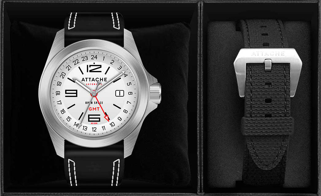 Российские механические наручные часы ATTACHE OPEN-SPACE-GMT-SSILVER