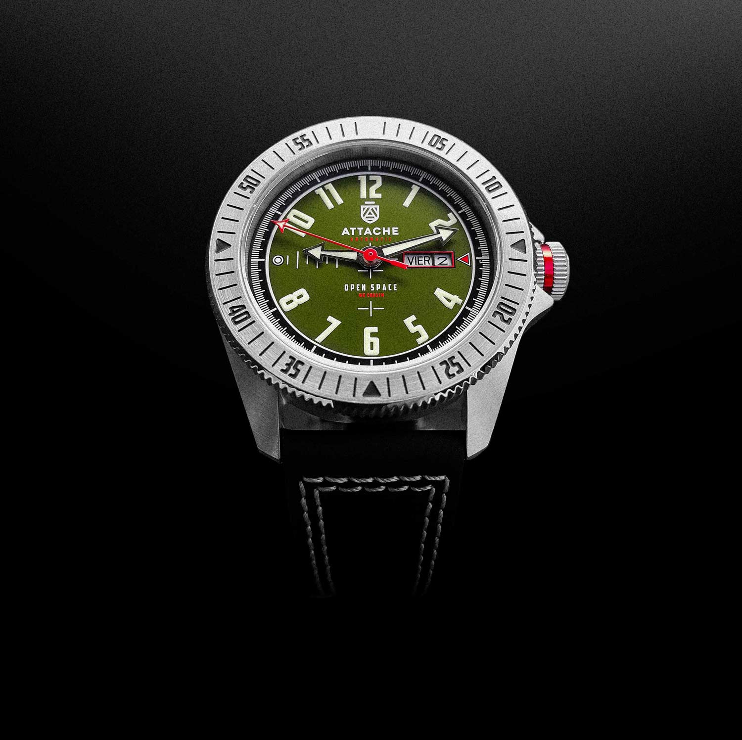 Великолепный аксессуар от ATTACHE станет надежным хранителем времени, куда бы вы ни отправились. Доверьте самое ценное профессионалу. Лимитированная серия — 50 экземпляров. Мужские автоматические наручные часы. Круглый стальной корпус. Рифленый безель. Матовый циферблат. Метки в виде арабских цифр. Окошко даты и дня недели находится в положении 3 часа. Люминесцентное покрытие Super-LumiNova, которое светится в темноте после непродолжительной зарядки на свету. Завинчивающаяся задняя крышка с изображением космонавта. Завинчивающаяся рифленая заводная головка с защитой. Удобный кожаный ремешок с классической застежкой. В комплекте сменный силиконовый ремешок.