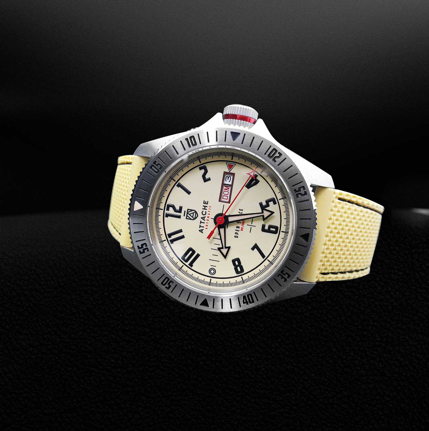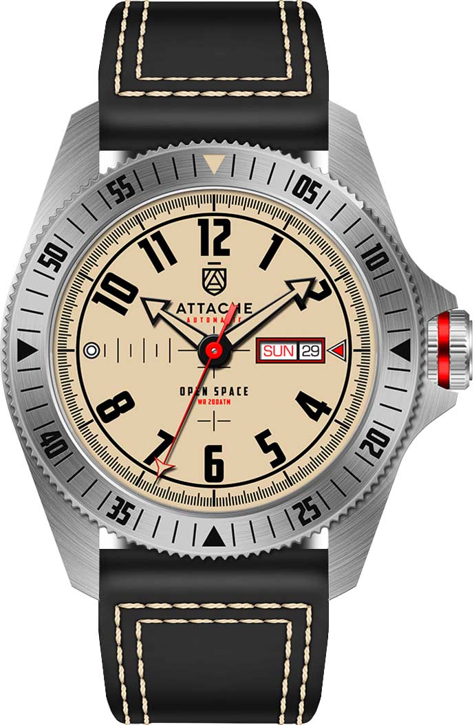 Великолепный аксессуар от ATTACHE станет надежным хранителем времени, куда бы вы ни отправились. Доверьте самое ценное профессионалу. Лимитированная серия — 50 экземпляров. Мужские автоматические наручные часы. Круглый стальной корпус. Рифленый безель. Матовый циферблат. Метки в виде арабских цифр. Окошко даты и дня недели находится в положении 3 часа. Люминесцентное покрытие Super-LumiNova, которое светится в темноте после непродолжительной зарядки на свету. Завинчивающаяся задняя крышка с изображением космонавта. Завинчивающаяся рифленая заводная головка с защитой. Удобный кожаный ремешок с классической застежкой. В комплекте сменный силиконовый ремешок.
