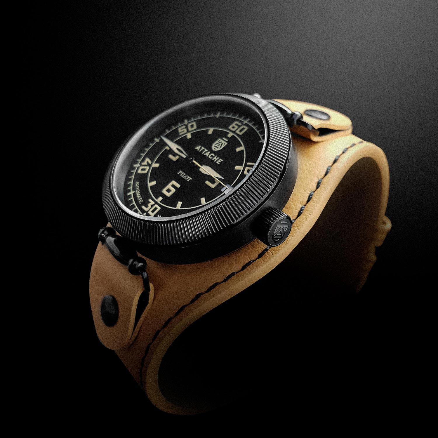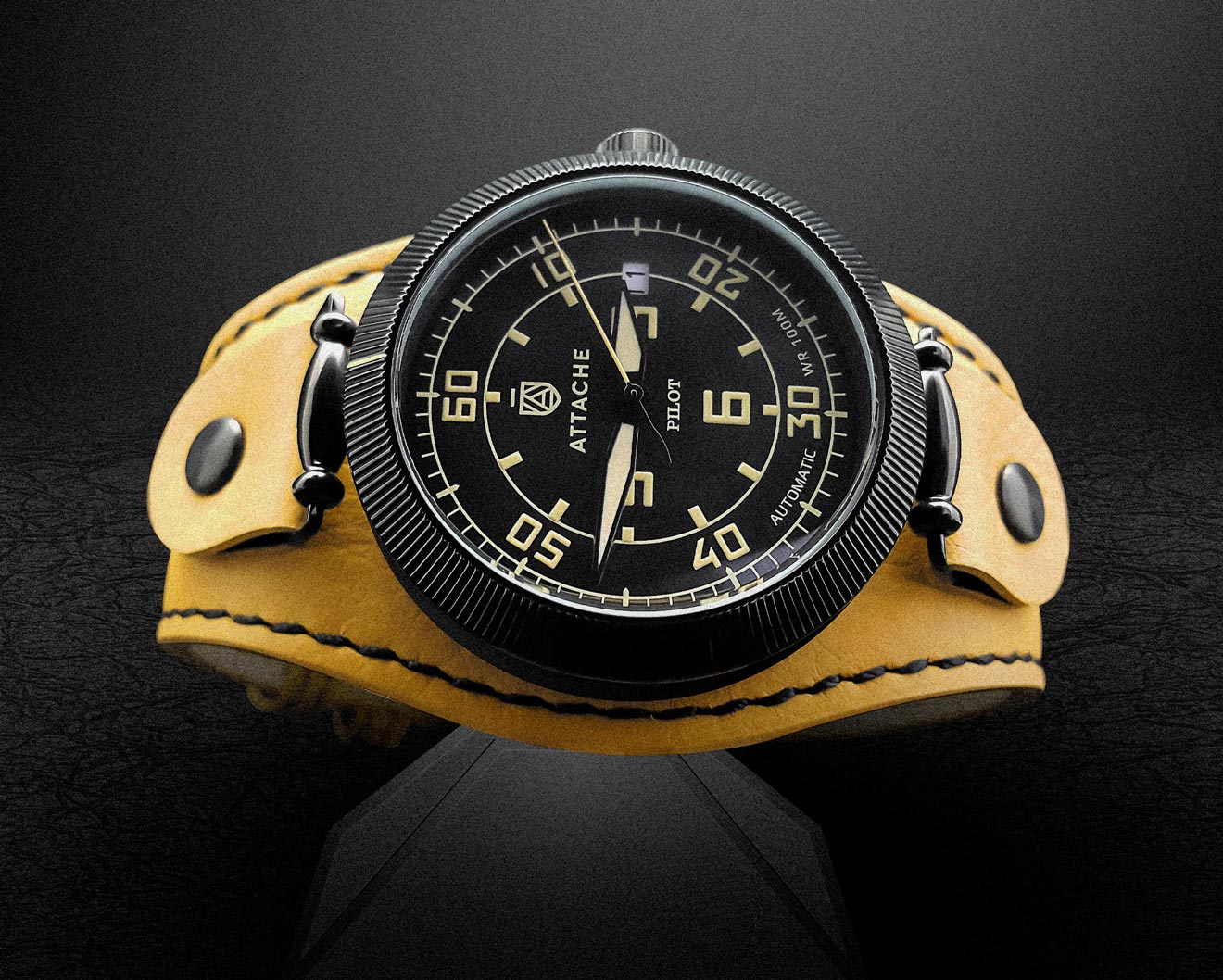 Российские механические наручные часы ATTACHE PILOT-BLACK-BY-BIEGE
