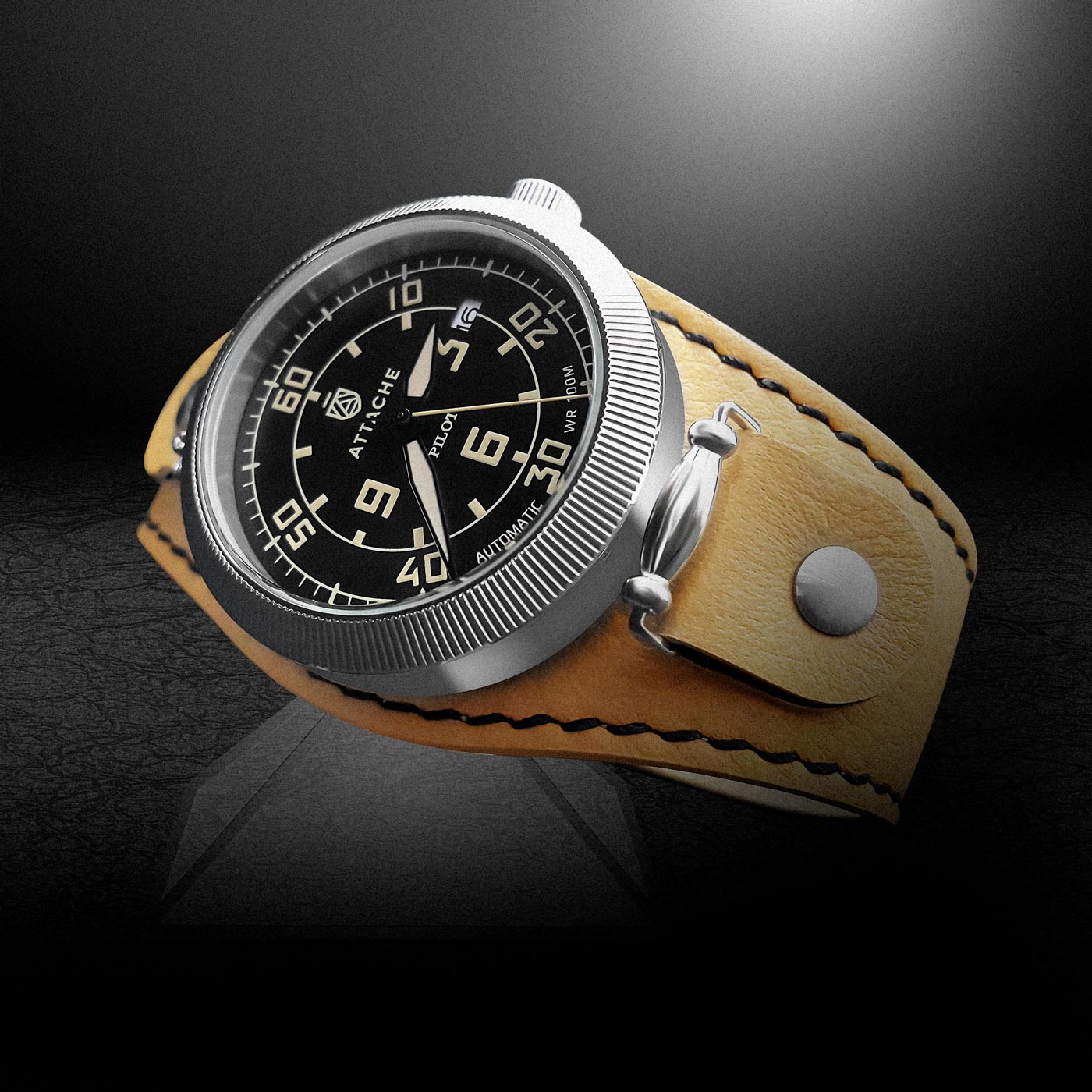 Российские механические наручные часы ATTACHE PILOT-STEEL-BY-BIEGE