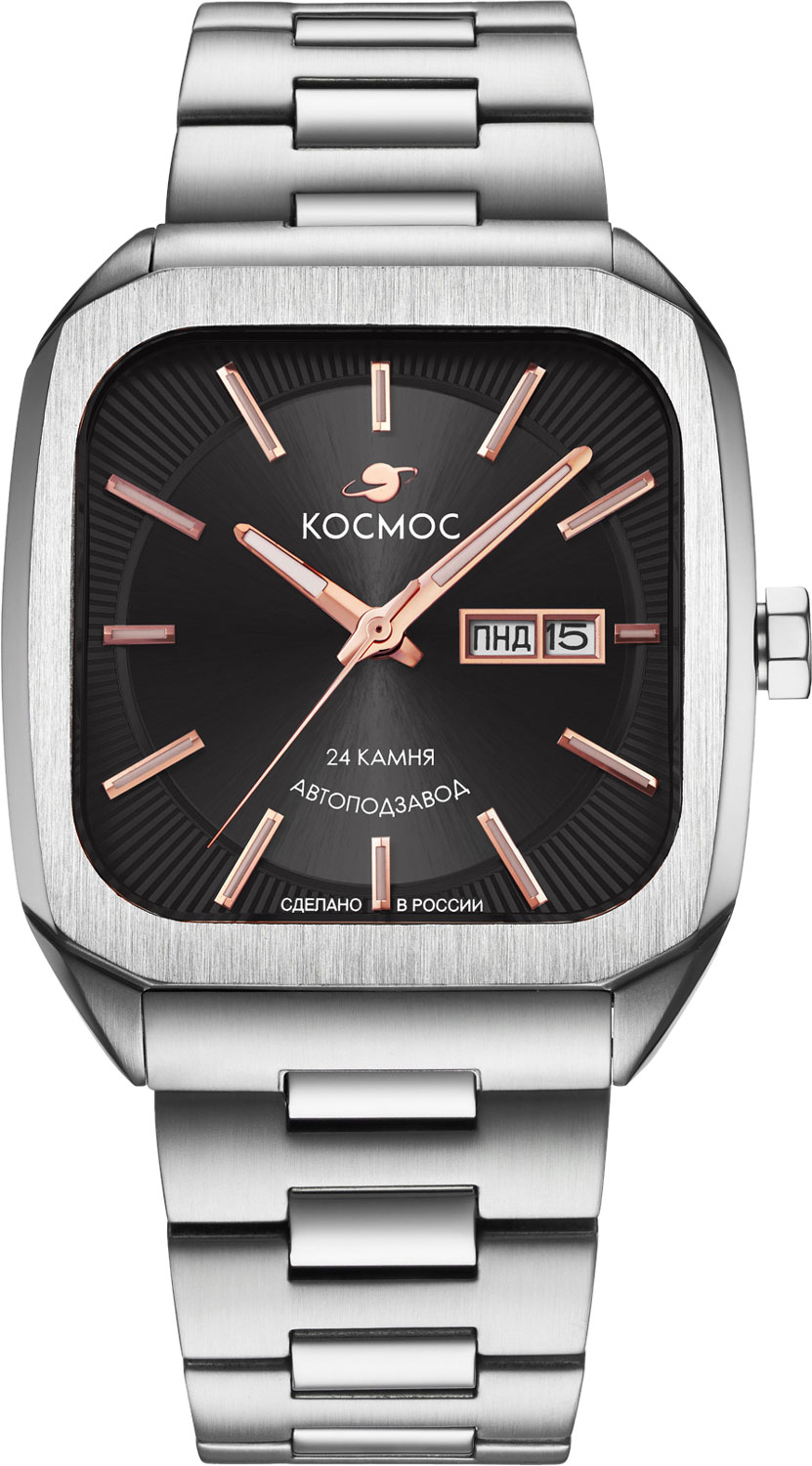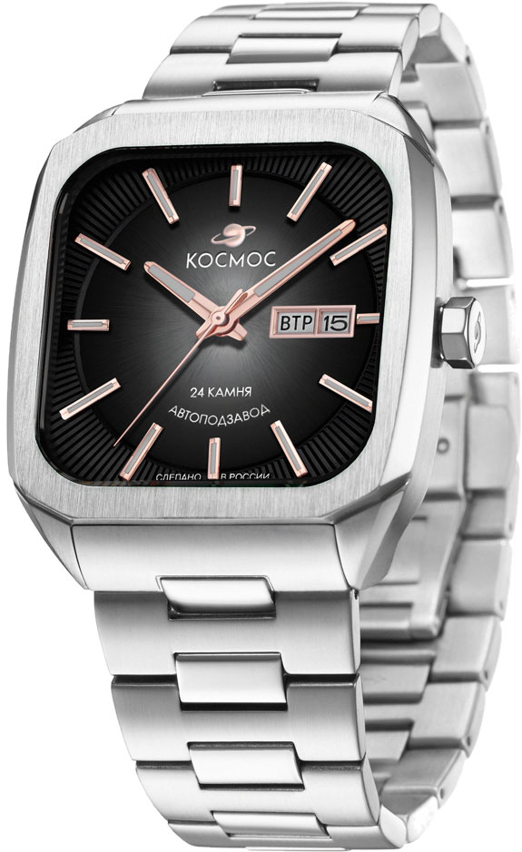 Окошко даты и дня недели находится в положении 3 часа. Для индикации дня недели используется два языка: русский и английский. Заводная головка в форме гайки украшена фирменным логотипом. Прозрачная задняя крышка с индивидуальным номером украшена изображением космонавта и крепится на 4 винтах. Стальной браслет с застежкой-бабочкой.