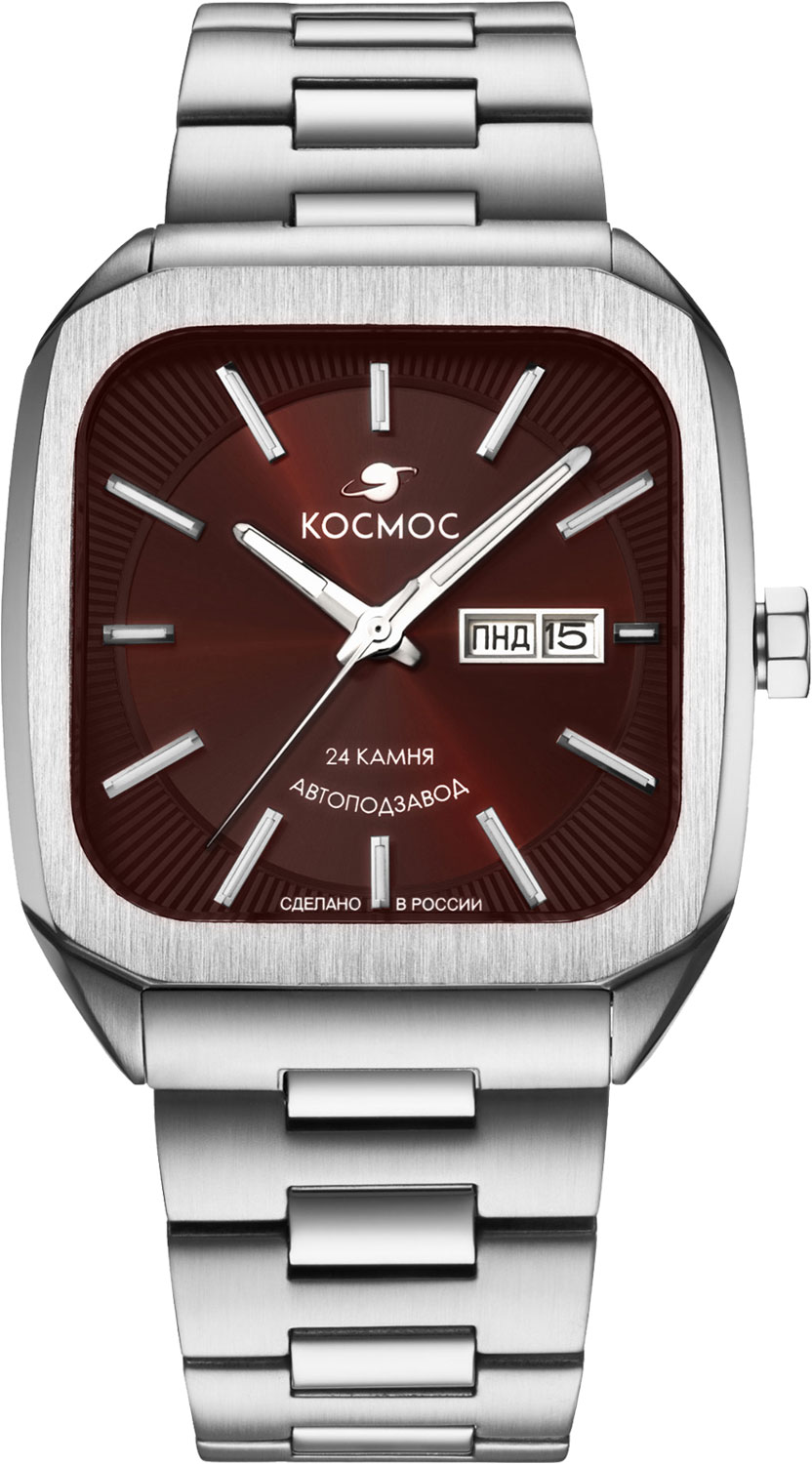 Окошко даты и дня недели находится в положении 3 часа. Для индикации дня недели используется два языка: русский и английский. Заводная головка в форме гайки украшена фирменным логотипом. Прозрачная задняя крышка с индивидуальным номером украшена изображением космонавта и крепится на 4 винтах. Стальной браслет с застежкой-бабочкой.