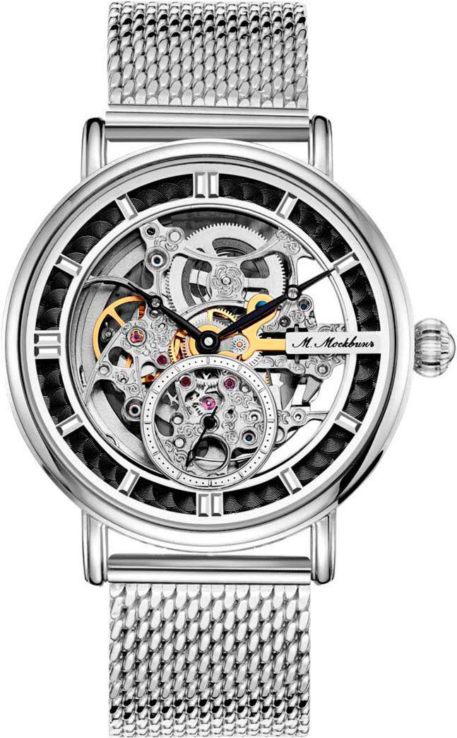 Мужские скелетонизированные механические часы с автоподзаводом. Запас хода 35 часов. Круглый латунный корпус. Циферблат защищен прочным сапфировым стеклом, устойчивым к образованию царапин. Метки в виде штрихов. Секундная стрелка вынесена на отдельный циферблат. На задней крышке имеется прозрачное окошко, через которое можно наблюдать работу механизма часов. Рифленая заводная головка. Стальной миланский браслет.