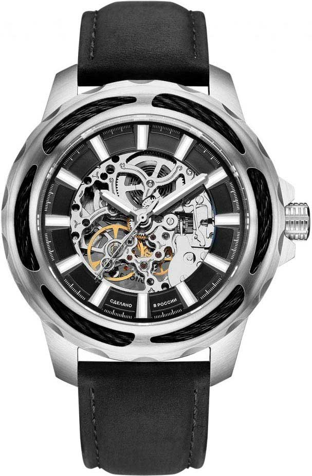 Elegance. Скелетонизированные часы. Возможность ручного завода. Метки в виде штрихов. Безель украшен декоративным тросом. Рифленая заводная головка с защитой. Ремешок с классической застежкой.