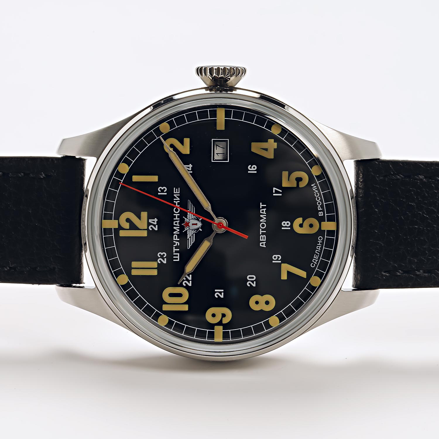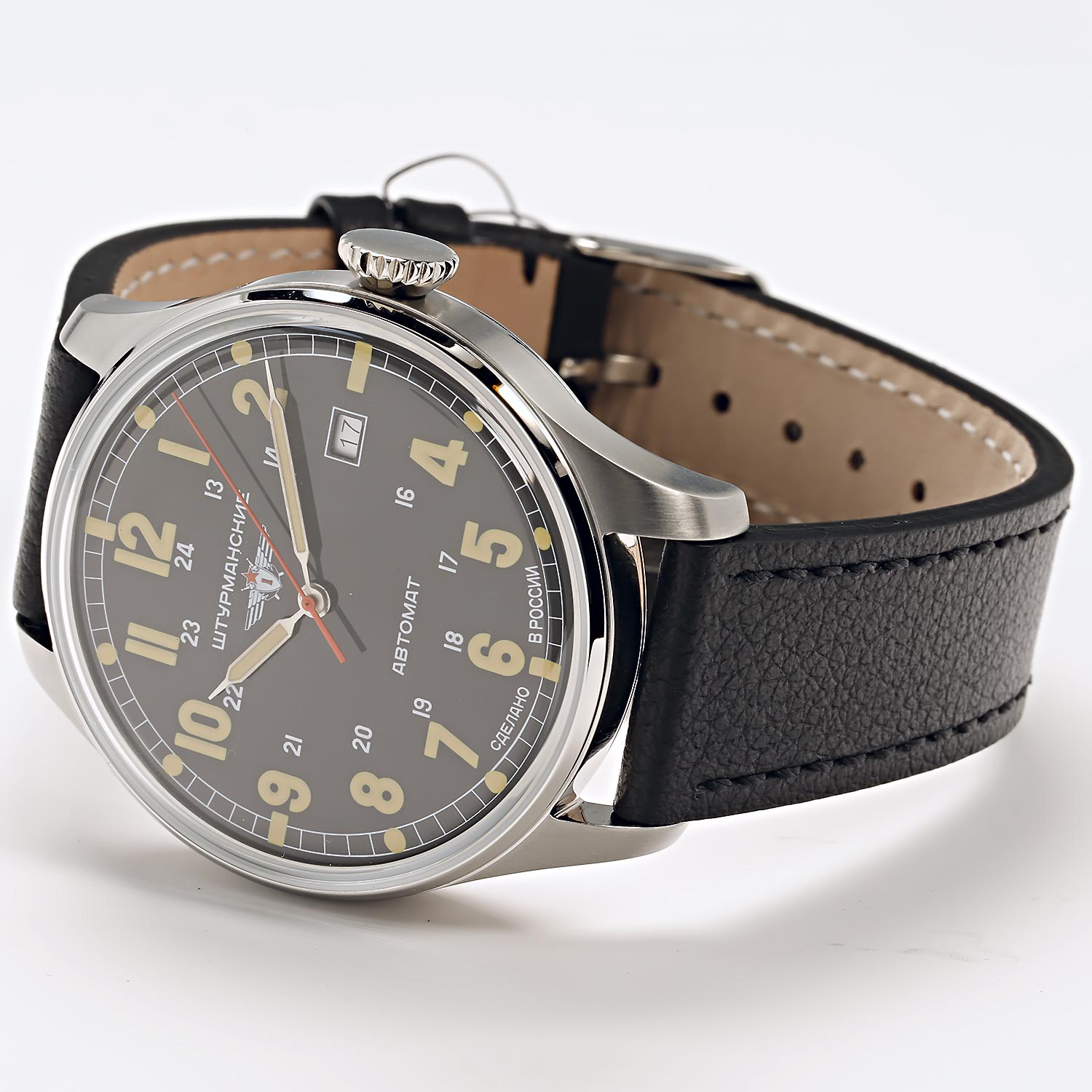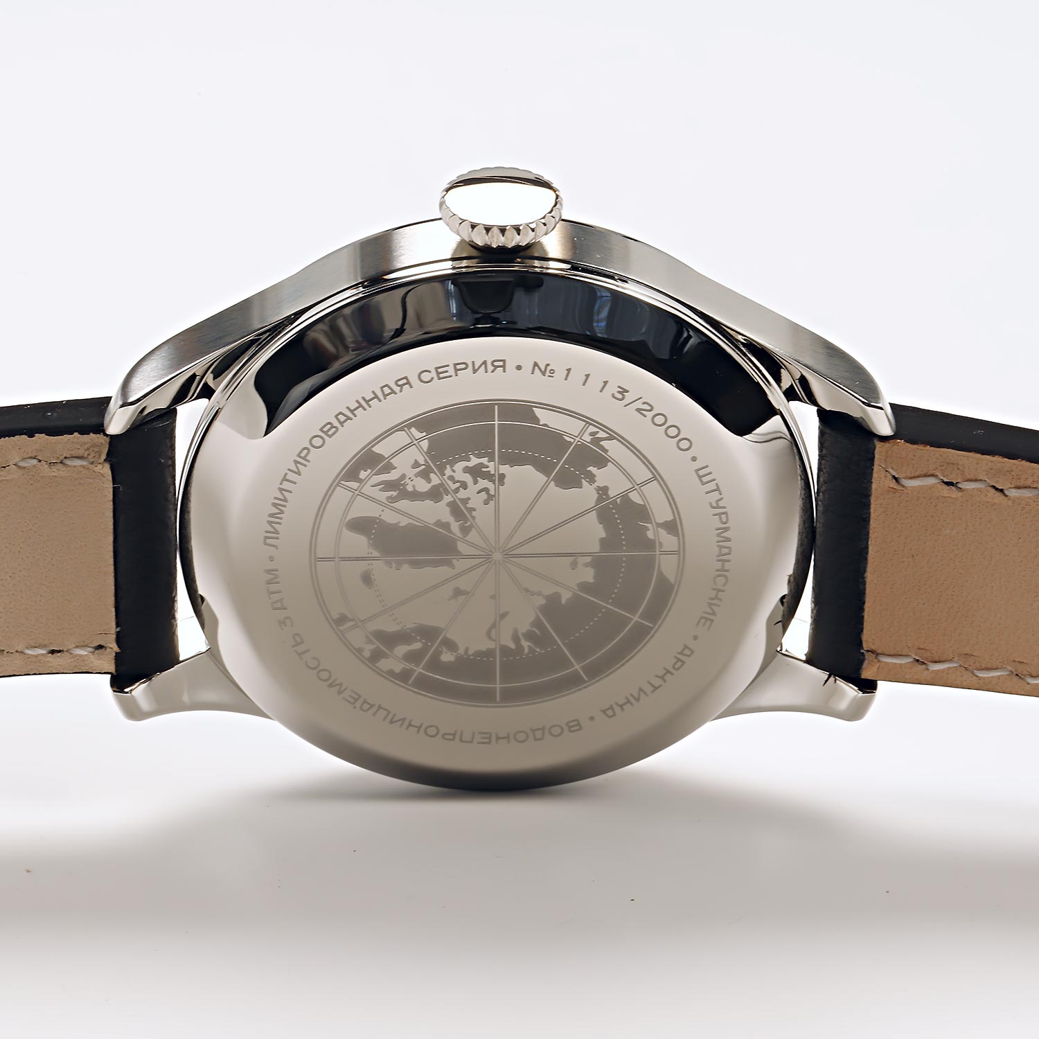 Стильное оформление часов оценят современные мужчины, которые знают цену каждой минуты. Арктика. Лимитированная серия - 2000 экземпляров. Впервые российские полярники ступили на лед Арктики в 1957 году. Их запястья украшали часы Первого Московского часового завода. Они были специально изготовлены для целей экспедиции, с учетом сверхнизких температур и атмосферного давления. Циферблат с 24 часовой шкалой отражал специфику места: полярную ночь, когда время невозможно определить по солнцу. В механизме 31 камень. Запас хода 31 час. Противоударное устройство оси баланса. 12-ти и 24-х часовой формат времени. Окошко даты. Задняя крышка украшена картой Арктики.