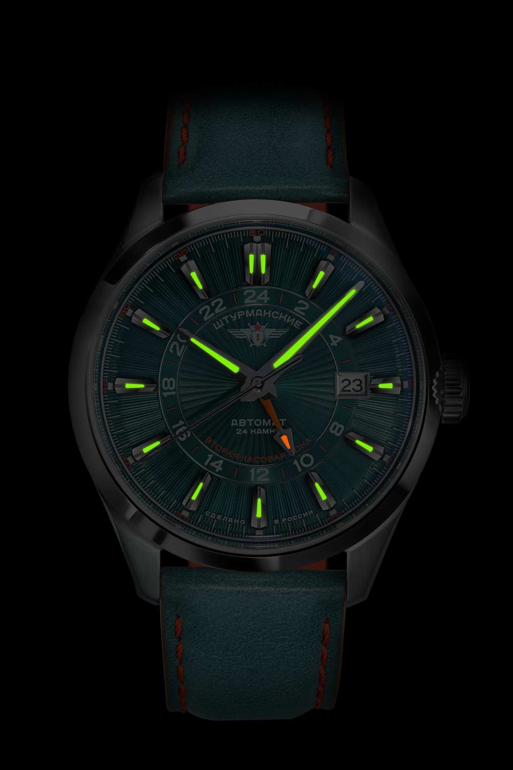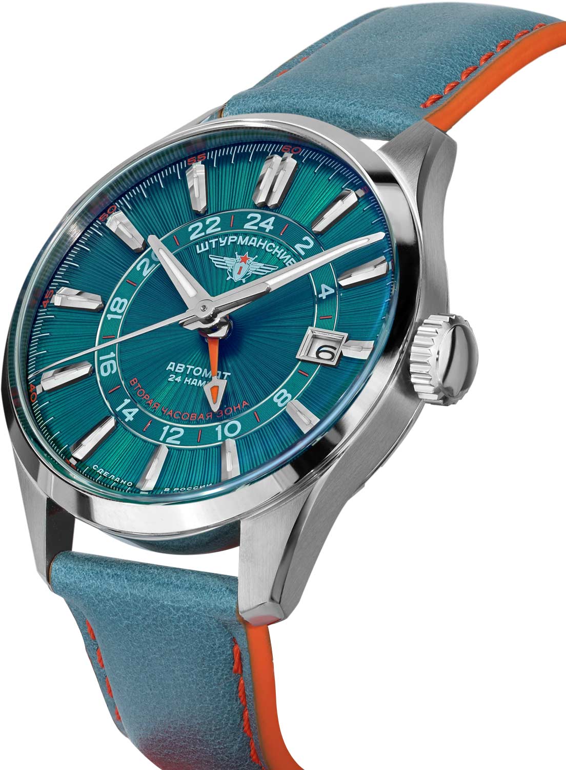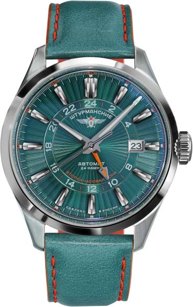 Мужские автоматические часы. Лимитированная серия — 3000 экземпляров. 12-ти и 24-х часовой формат времени. В механизме 24 камня. Запас хода 41 час. Гильошированный циферблат выполнен по технологии Sunray (солнечные лучи). Накладные метки в виде штрихов сложной формы. Окошко даты в накладной рамке находится в положении 3 часа.
