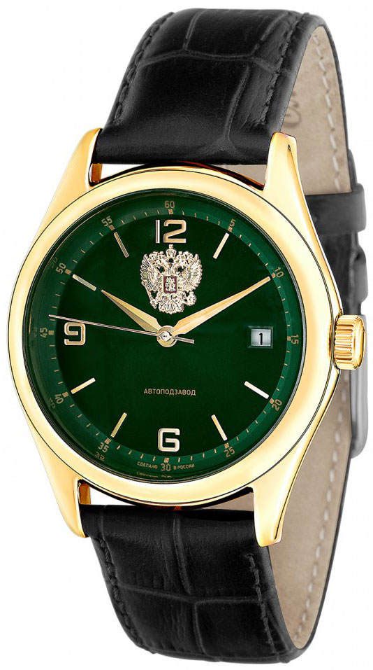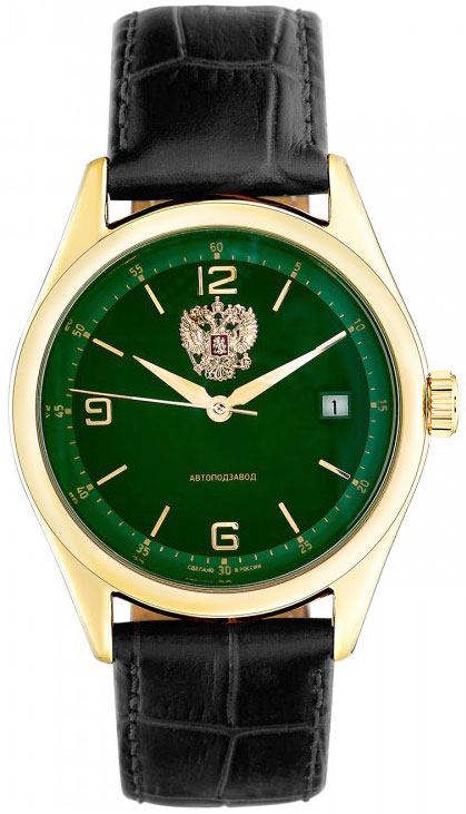 Выразительные и элегантные часы, выполненные в классическом стиле, идеально подойдут для повседневного ношения. Классические мужские механические часы Премьер. Круглый полированный корпус. Циферблат украшен изображением герба РФ. Окошко даты в положении 3 часа. Метки в виде штрихов и арабских цифр. В механизме 21 камень, частота 21600 полуколебаний в час. Запас хода 42 часов. Рифленая заводная головка. Удобный кожаный ремешок с классической застежкой.