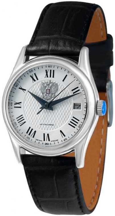 Аккуратные женские часы с гербом России на циферблате и кожаным ремешком прекрасно подойдут для повседневного общения со временем. Премьер. На циферблате изображение герба Российской Федерации. Окошко даты. Возможность ручного завода. Круглый корпус из нержавеющей стали. Кожаный ремешок с классической застежкой.