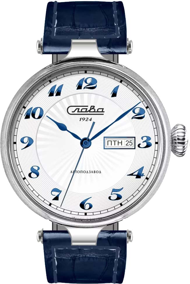 Премьер. Механические часы унисекс с автоподзаводом. В механизме 21 камень, частота 21600 полуколебаний в час. Запас хода 42 часа. Запас хода 45 часов. Стальной круглый корпус. Метки в виде арабских цифр. Окошко даты и дня недели находится в положении 3 часа. Рифленая заводная головка. Удобный ремешок из натуральной кожи с классической застежкой.
