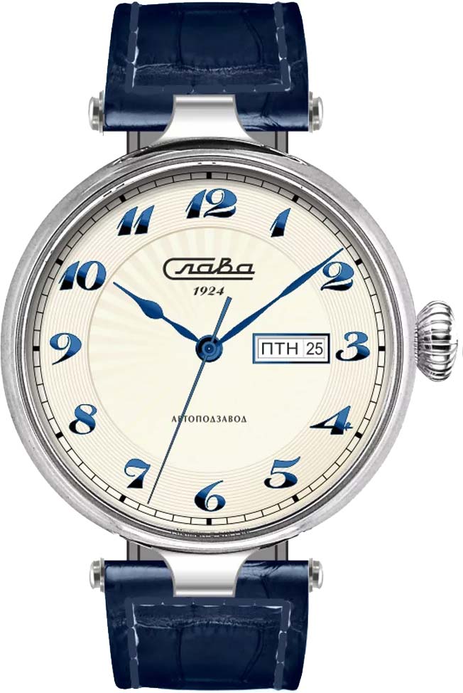 Премьер. Механические часы унисекс с автоподзаводом. В механизме 21 камень, частота 21600 полуколебаний в час. Запас хода 42 часа. Запас хода 45 часов. Стальной круглый корпус. Метки в виде арабских цифр. Окошко даты и дня недели находится в положении 3 часа. Рифленая заводная головка. Удобный ремешок из натуральной кожи с классической застежкой.