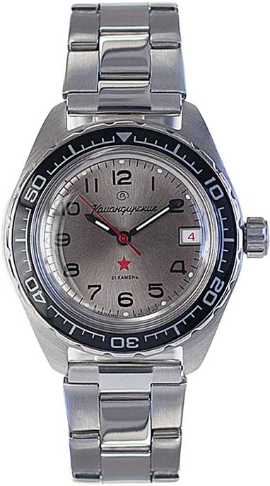 Легендарные мужские часы, которым не подвластно время и которые будут актуальны во все времена! Командирские К-020. Мужские часы. В механизме 31 камень, частота 19800 полуколебаний в час. Запас хода 31 час. Автоподзавод с предохранительным устройством от перезаводки пружины. Противоударное устройство оси баланса. Циферблат выполнен по технологии Sunray (солнечные лучи) и защищен органическим стеклом. Метки в виде арабских цифр. Окошко даты находится в положении 3 часа. Задняя крышка украшена гравировкой. Браслет с раскладывающейся застежкой. Застежка с системой блокировки. Производитель оставляет за собой право вносить изменения во внешний вид часов.