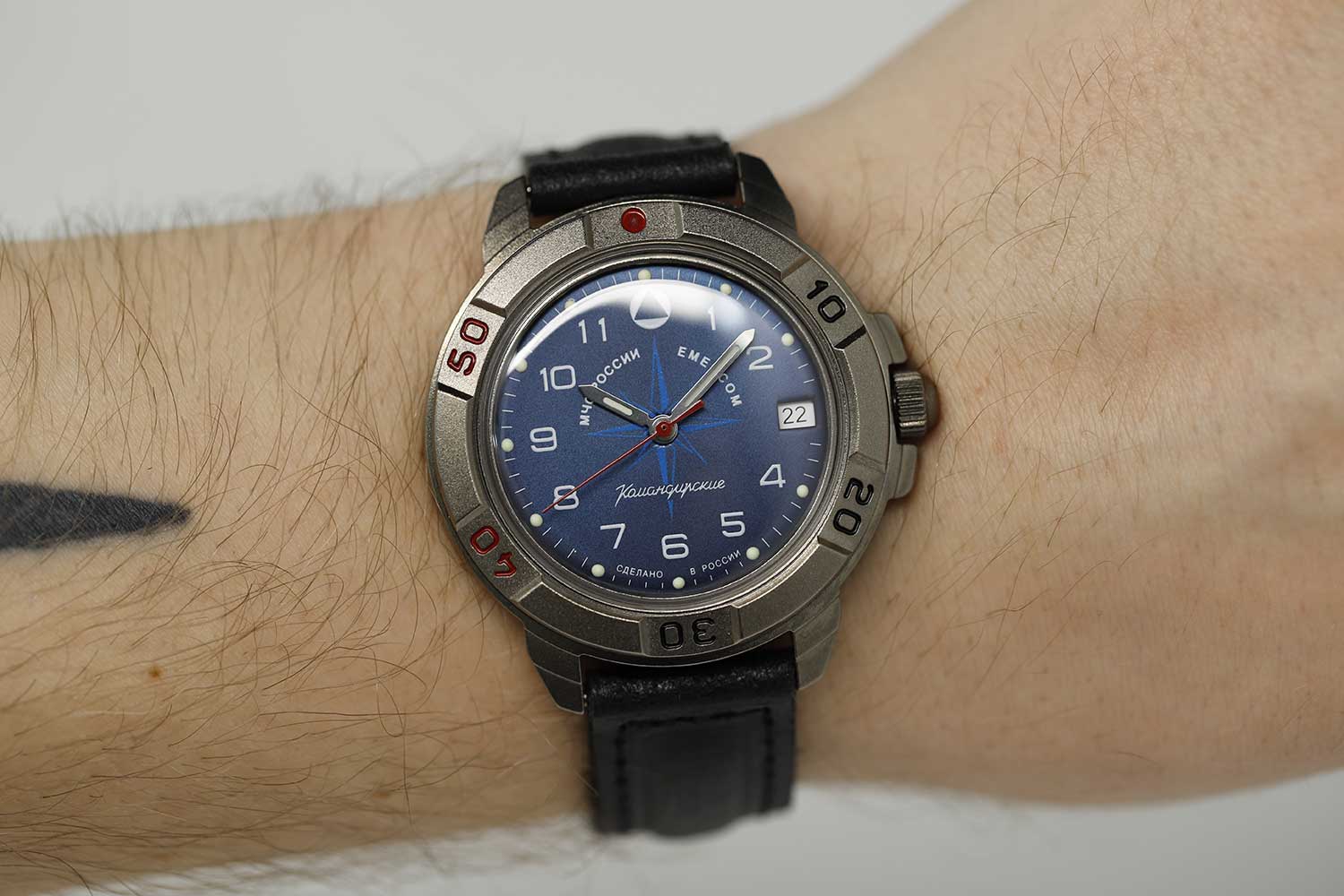 Легендарные российские часы сочетают в себе практичность, точность и суровый мужской стиль. Командирские. Мужские часы. В механизме 17 камней. Запас хода 36 часов. Противоударное устройство оси баланса. Метки в виде арабских цифр. Окошко даты. Заводная головка с защитой. Стальная задняя крышка. Ремешок с классической застежкой. Производитель оставляет за собой право вносить изменения во внешний вид часов.