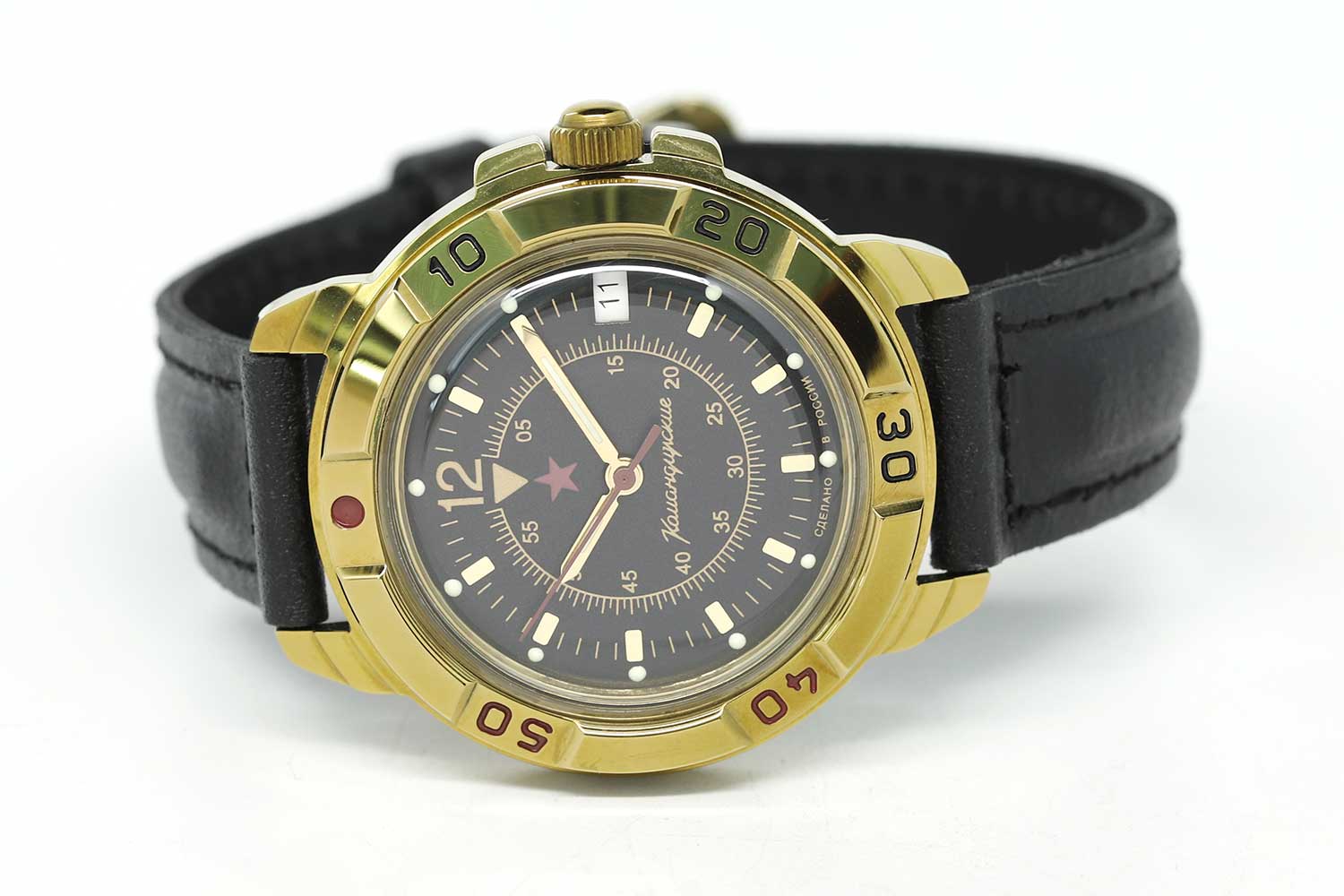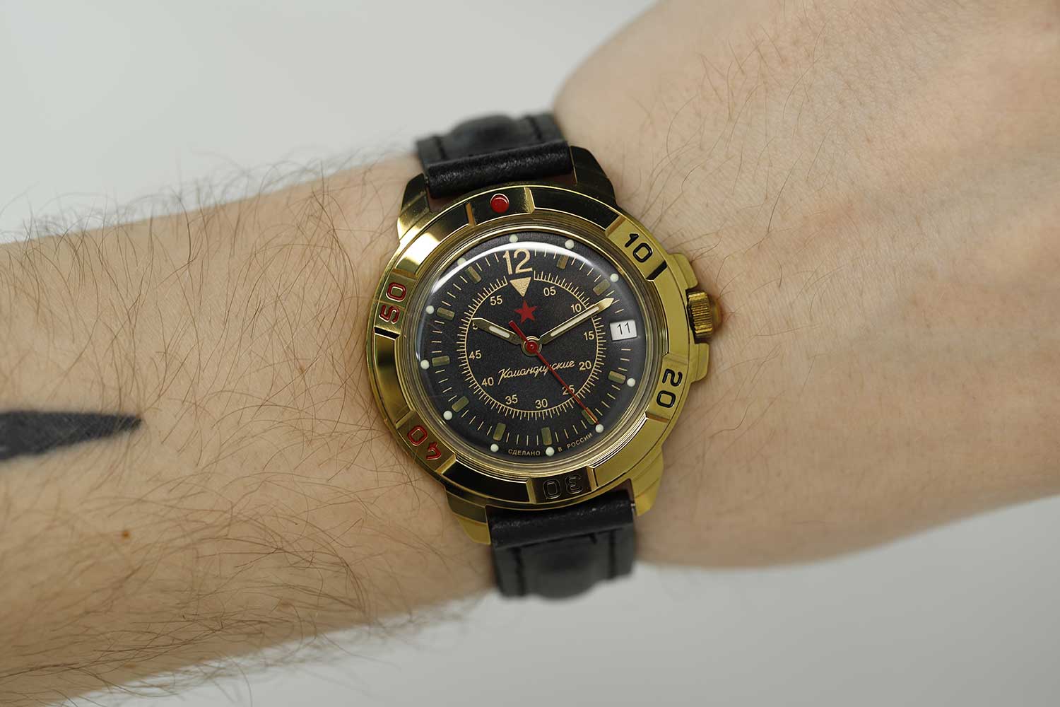 Легендарные Командирские часы с обновленным дизайном циферблата. Российские часы с историей. Командирские. В механизме 17 камней, частота 19800 полуколебаний в час. Запас хода 36 часов. Противоударное устройство оси баланса. Заводная головка с защитой. Производитель оставляет за собой право вносить изменения во внешний вид часов.