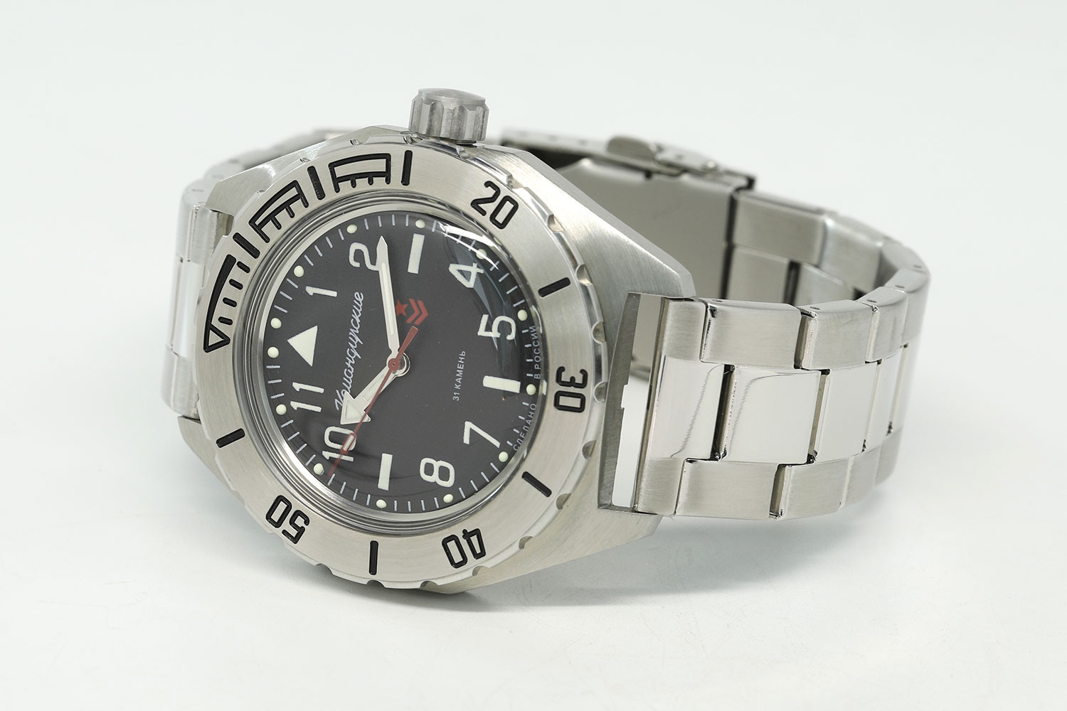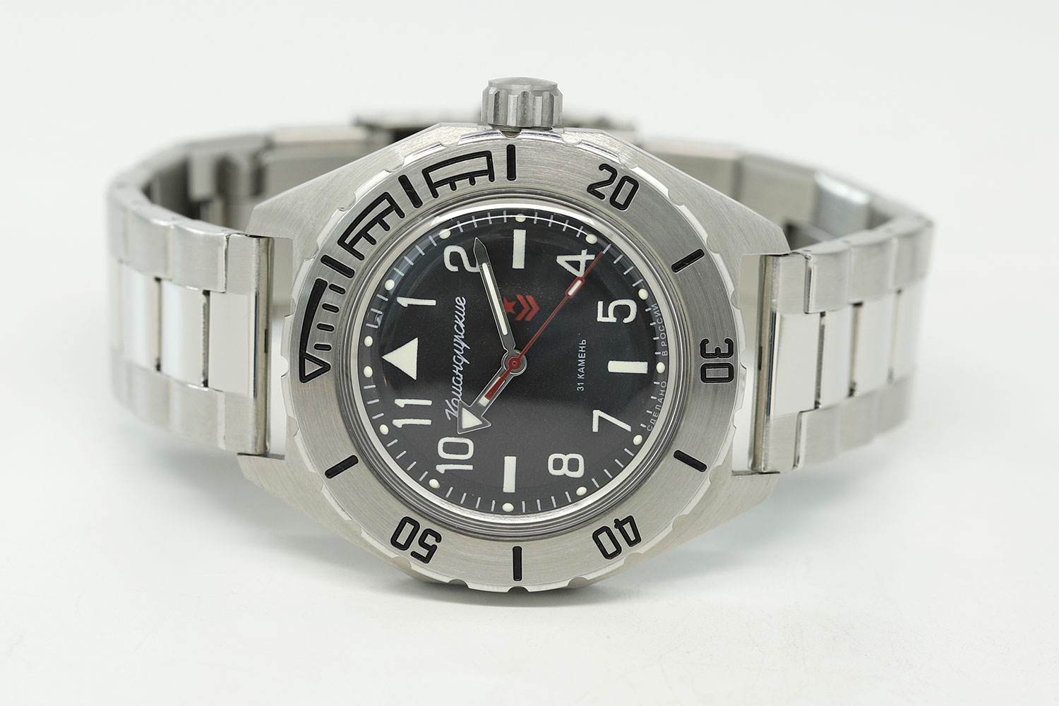 Легендарные российские часы сочетают в себе тщательно выверенный механизм, лаконичный мужской стиль и качественные материалы. Командирские К-35. В механизме 31 камень, частота 19800 полуколебаний в час. Запас хода 31 час. Противоударное устройство оси баланса. Браслет с раскладывающейся застежкой. Производитель оставляет за собой право вносить изменения во внешний вид часов.