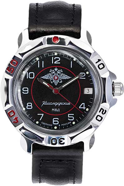 Командирские часы порадуют вас своей точностью и безупречным исполнением. Мужские часы Командирские. В механизме 17 камней, частота 19800 полуколебаний в час. Запас хода 36 часов. Противоударное устройство оси баланса. Циферблат с метками в виде арабских цифр украшен символикой Министерства внутренних дел Российской Федерации. Окошко даты находится в положении 3 часа. Стальная задняя крышка. Заводная головка с защитой. Ремешок с классической застежкой. Производитель оставляет за собой право вносить изменения во внешний вид часов.